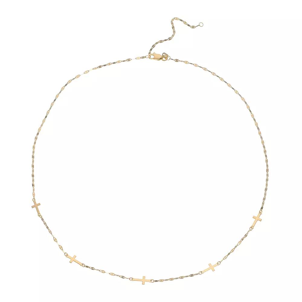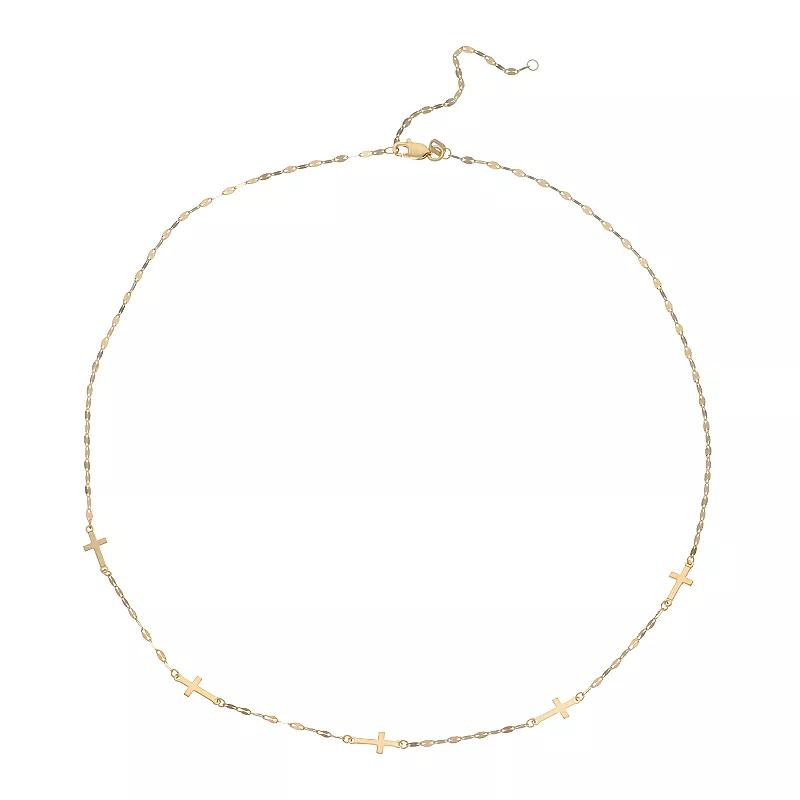Wear your faith with subtle grace and all due reverence with this adjustable 14k Gold 5 Cross Station Necklace. Click on this JEWELRY & WATCHES GUIDE to learn about fit, styles, materials and more! Wear your faith with subtle grace and all due reverence with this adjustable 14k Gold 5 Cross Station Necklace. Click on this JEWELRY & WATCHES GUIDE to learn about fit, styles, materials and more! FEATURES 10.85mm x 4.85mm charm Chain type: link 1.7mm wide chain 1.85 gram weight Nickel free Metal: 14k gold Polished finish Packaging: boxed Size: 18. Color: Yellow. Gender: female. Age Group: adult.