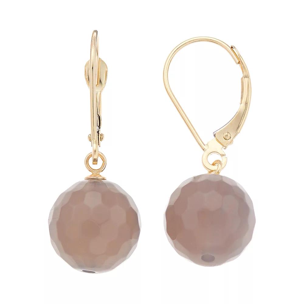 Add the perfect hint of color to your outfit with these 14k gold genuine agate drop earrings.EARRING DETAILS Length: 0.39 in. Closures: leverback Metal: 14k gold Packaging: boxed STONE DETAILS Stone type: agate Total weight: 2 ct. Shape: faceted round Gemstones may have been treated to enhance their appearance. Special care may be required. Size: One Size. Color: Grey. Gender: female. Age Group: adult.