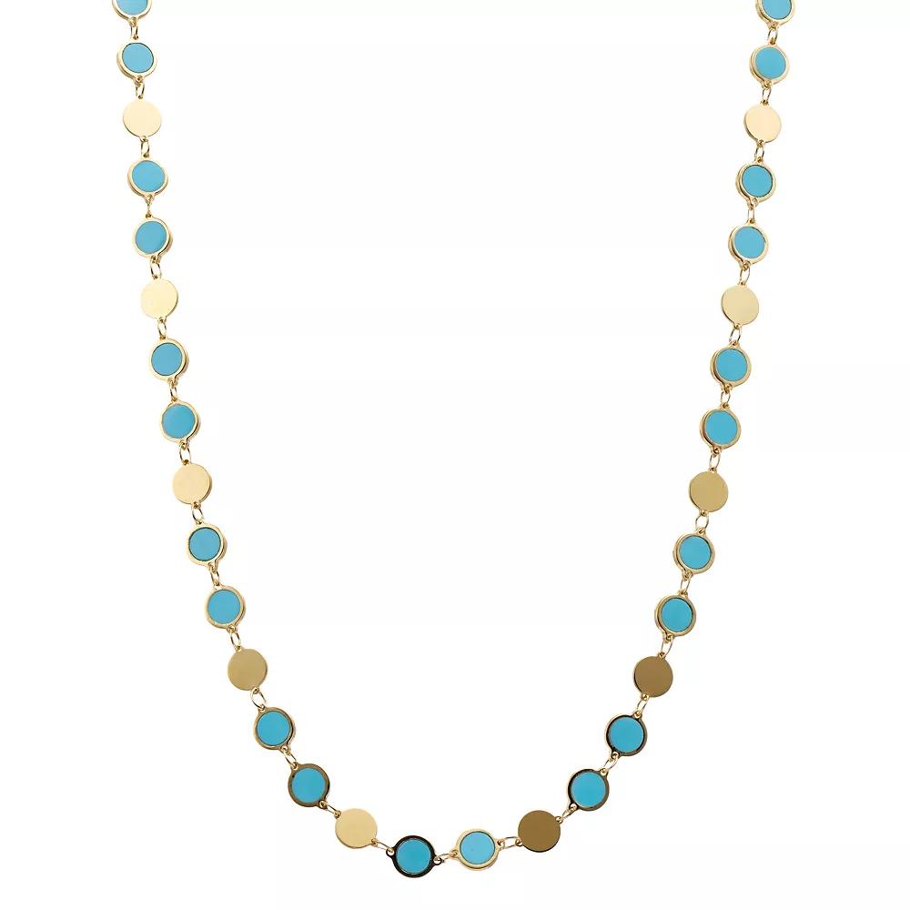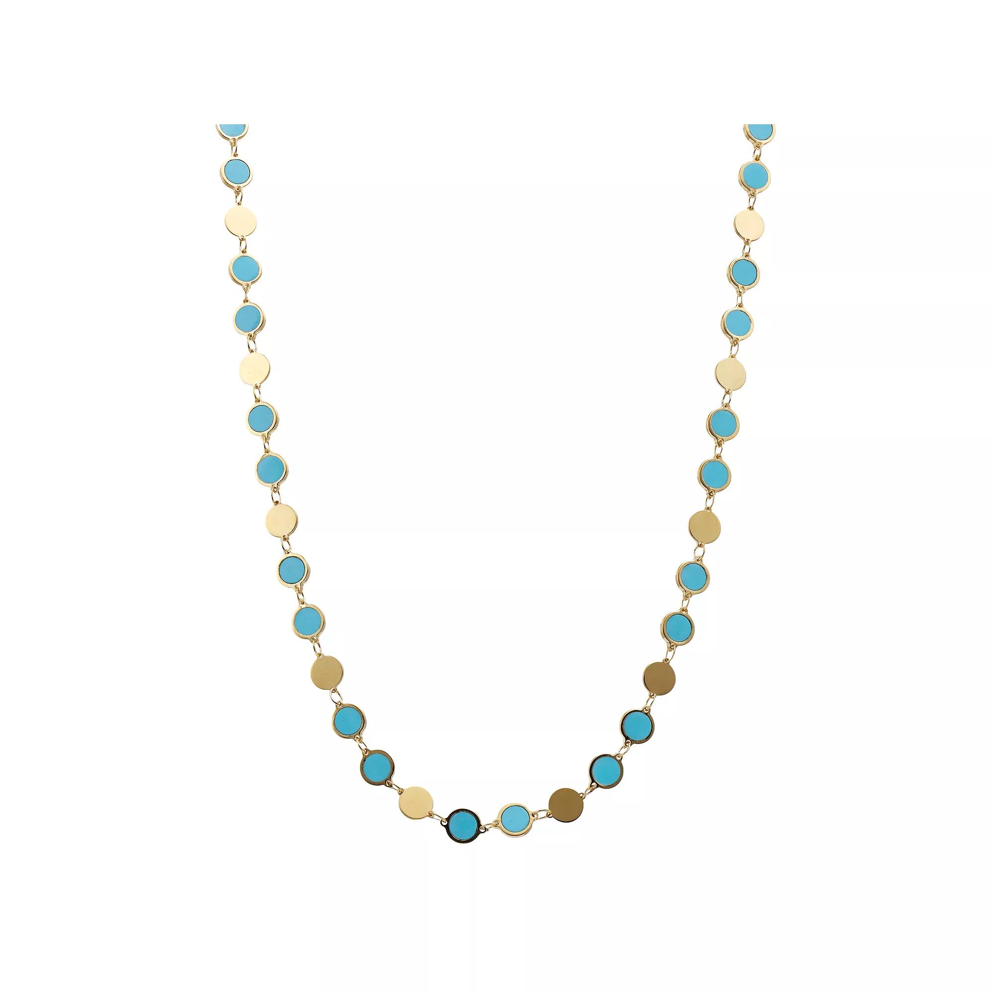 Accessorize in style with this 14k gold alternative paste of turquoise disc necklace. Click on this JEWELRY & WATCHES GUIDE to learn about fit, styles, materials and more! Accessorize in style with this 14k gold alternative paste of turquoise disc necklace. Click on this JEWELRY & WATCHES GUIDE to learn about fit, styles, materials and more! FEATURES Chain length: 18 in. Clasp: lobster-claw Metal: 14k gold Finish: polished Packaging: boxed Size: 18. Color: Blue. Gender: female. Age Group: adult.