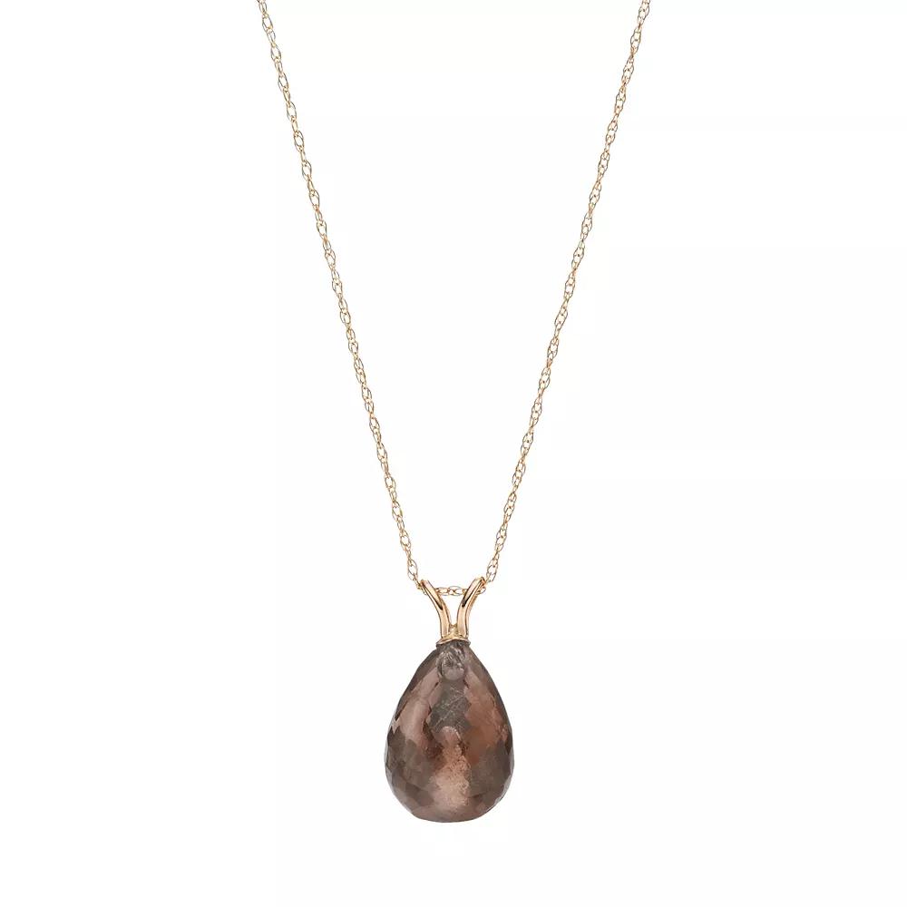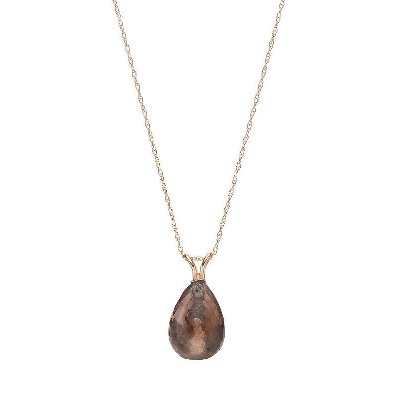Adorn yourself with the graceful beauty of this 14k gold genuine smoky quartz briolette necklace. Comes in a gift box.PENDANT DETAILS Pendant length: .6 in. Chain length: 18 in. Clasp: spring-ring Metal: 14k gold STONE DETAILS Stone type: genuine smoky quartz Total weight: 3 1/2 ct. Shape: briolette Gemstones may have been treated to enhance their appearance. Special care may be required. Size: 18". Color: Brown. Gender: female. Age Group: adult.