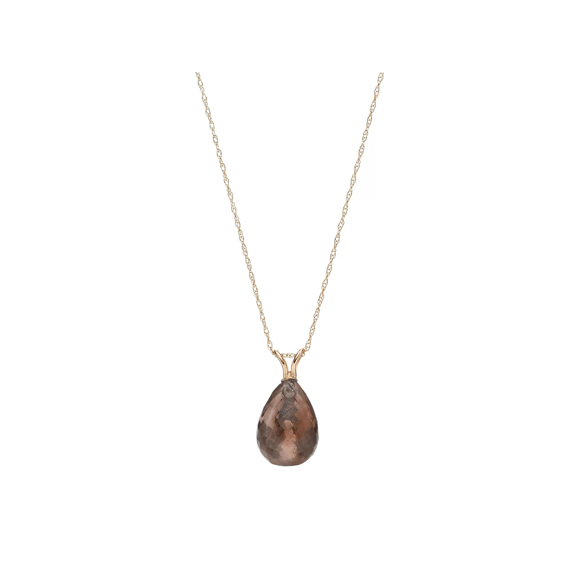 14k Gold Smoky Quartz Briolette Pendant Necklace, Women's,