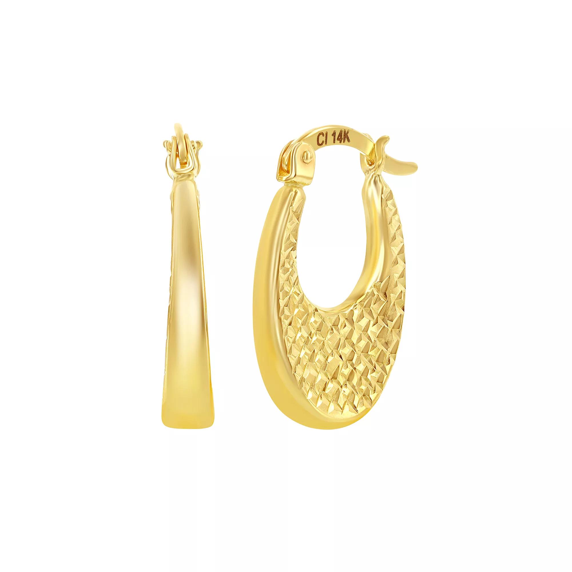 EXPERTLY CRAFTED exquisitely handmade diamond-shaped earrings, choose from classic to unique styles of gold hoops that boost your casual outfits or elevate your look for special occasions. | Simona Yellow Gold Oval Textured & D-C Oval Hoop Earrings - 14K Gold
