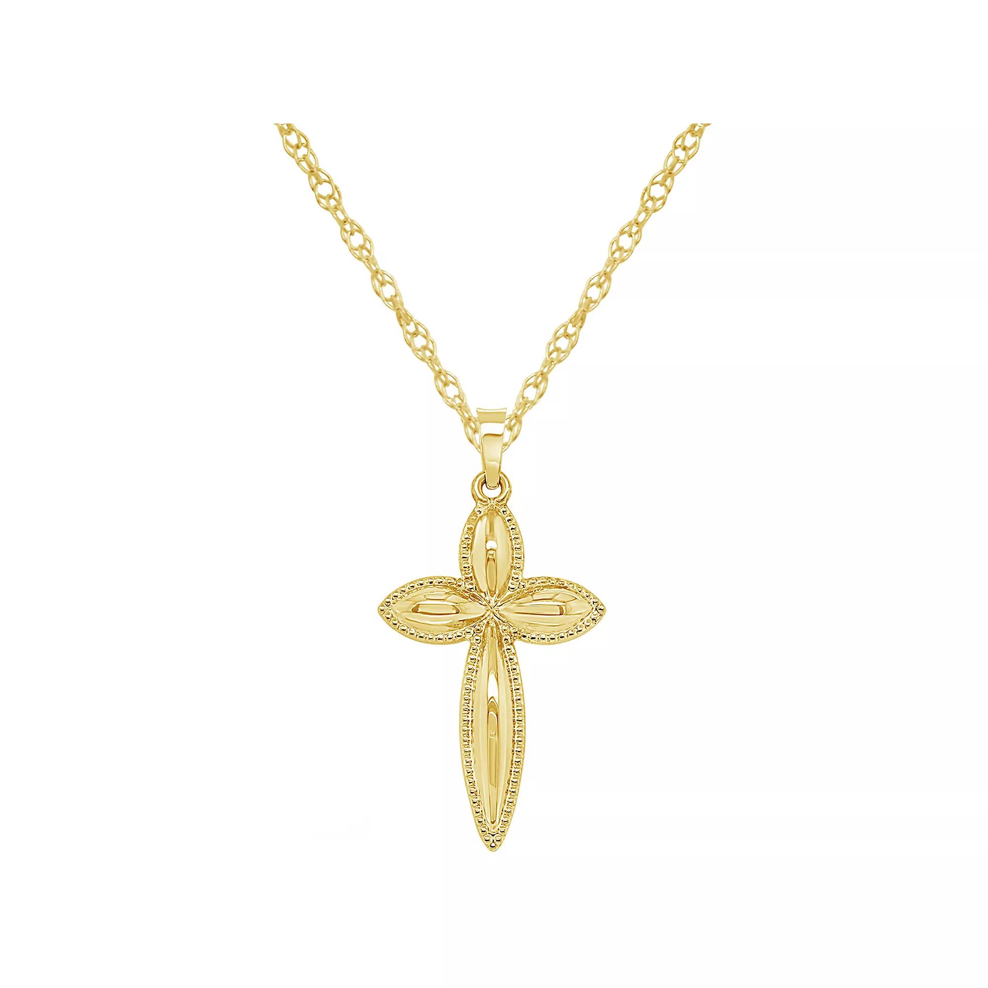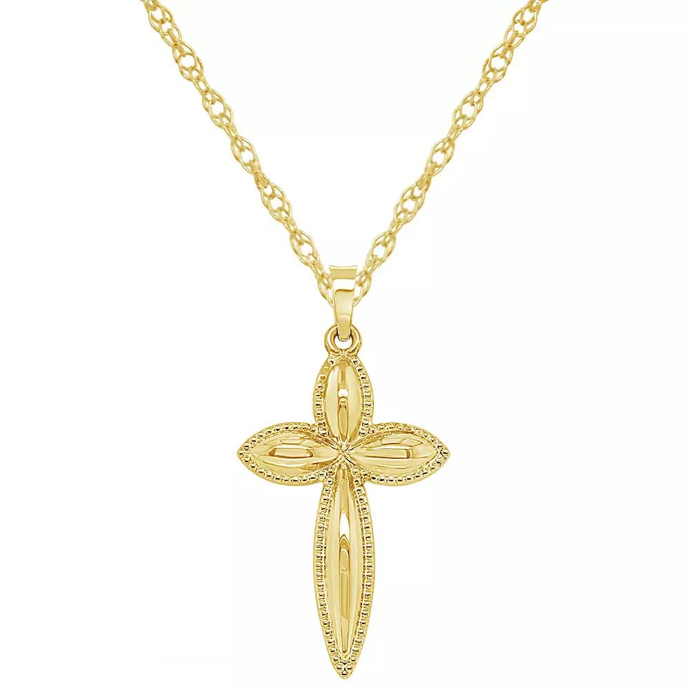 Keep your faith close to your heart when you don this 14k gold cross pendant. Keep your faith close to your heart when you don this 14k gold cross pendant. Pendant size: 1 1/4"L x 5/8"W Chain length: 18 in. Chain type: rope Clasp: spring-ring Metal: 14k gold Finish: polished Packaging: boxed Please note, due to the high value of this item, a signature may be required upon delivery. Size: 18". Color: Yellow. Gender: female. Age Group: adult.