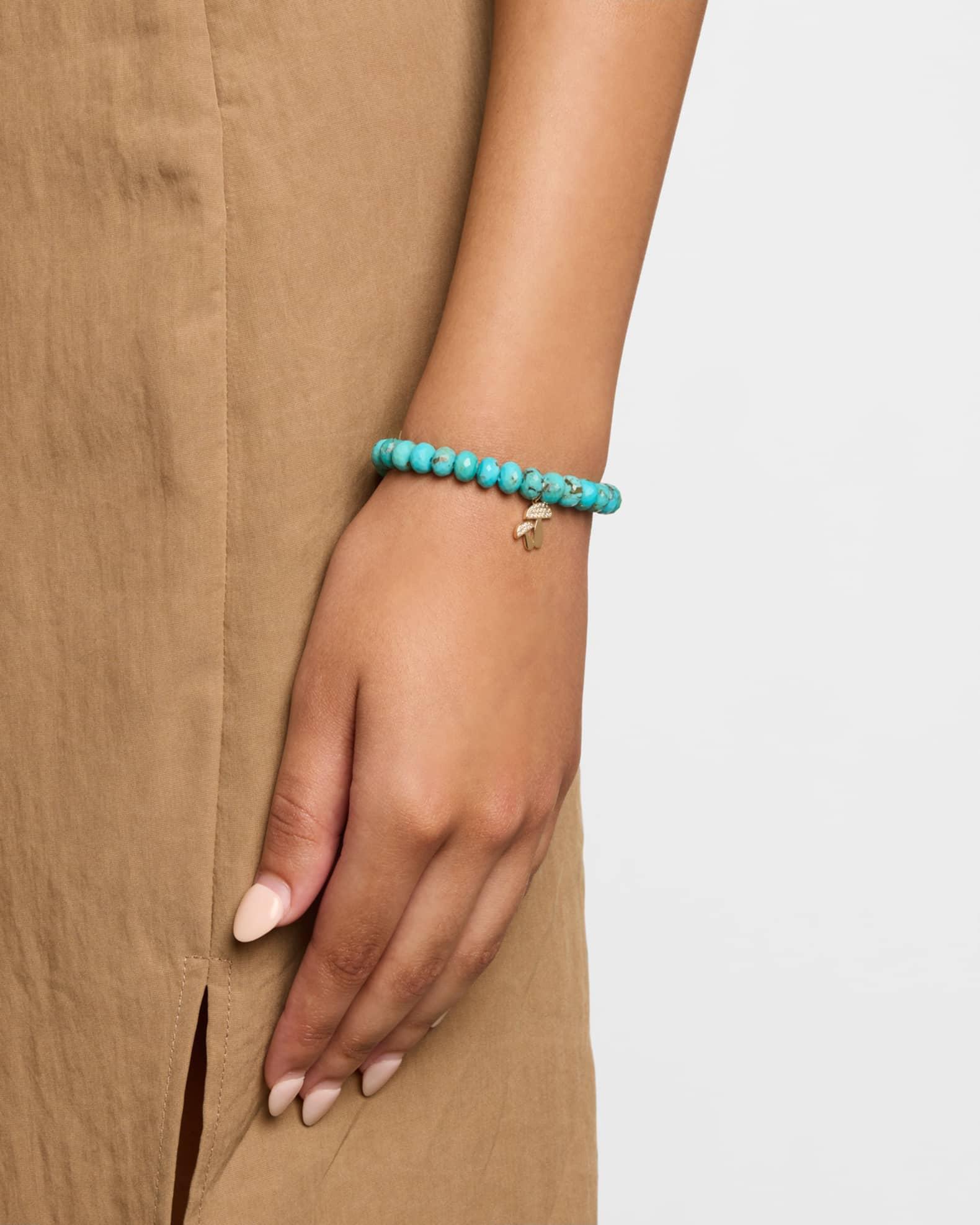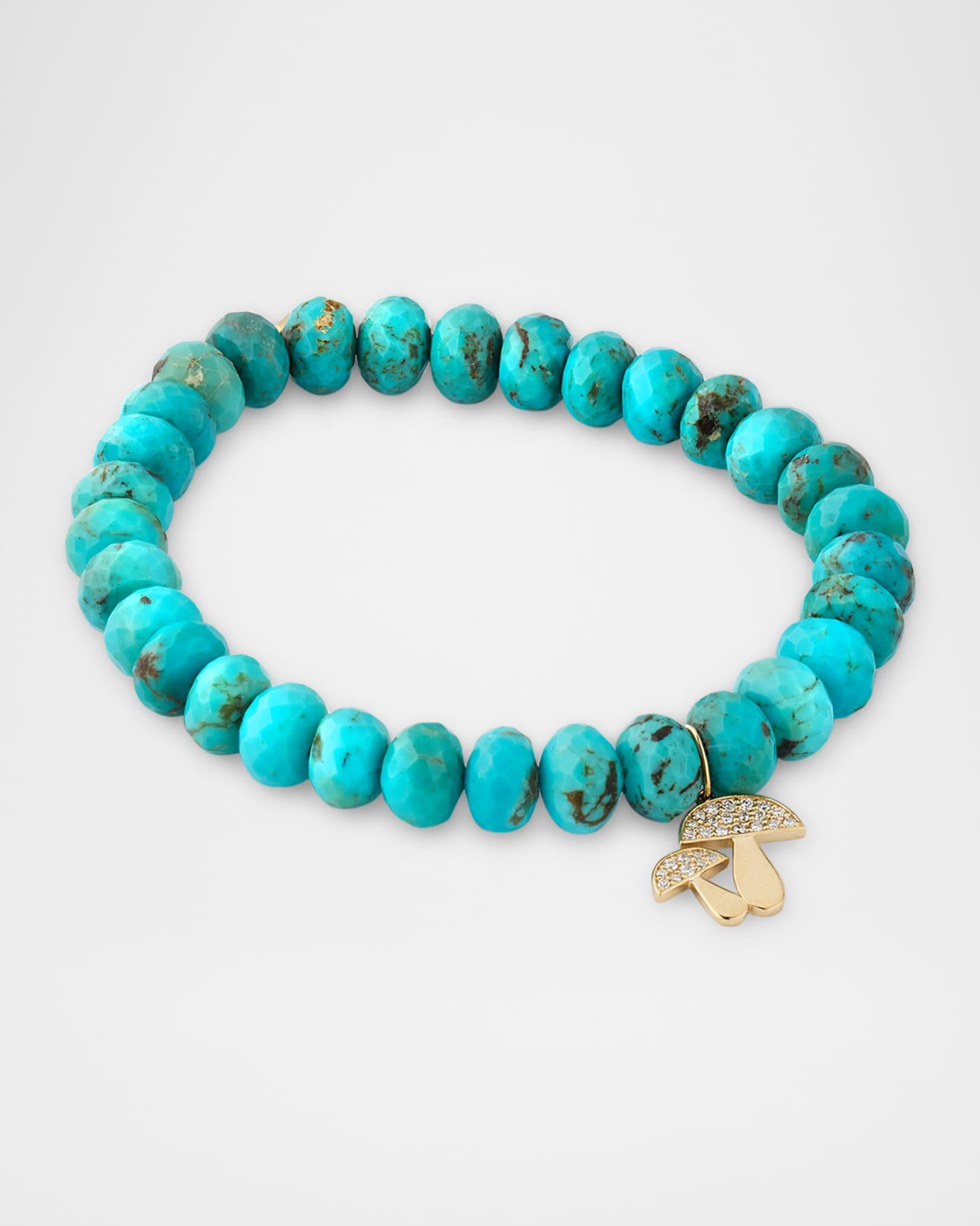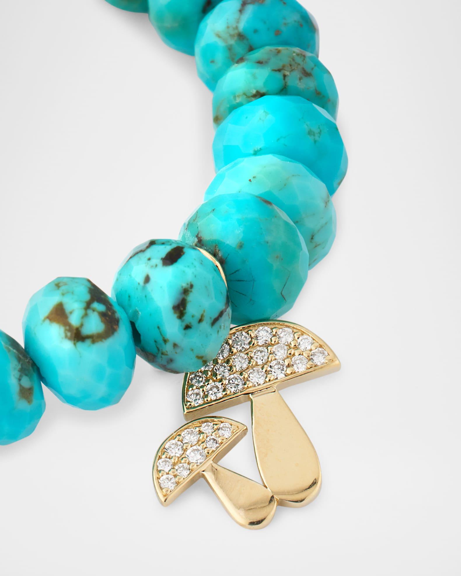 14K Gold Diamond Pave Mushroom Charm Turquoise Beaded Bracelet