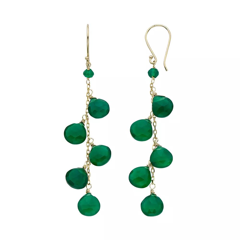 Add a bold pop of color to your ensemble when you don these gorgeous green onyx drop earrings.EARRING DETAILSLength: 2 in. Backings: fishhookMetal: 14k goldMay contain 14k gold-filled connection wireSTONE DETAILSStone type: genuine green onyxCut: briolette, faceted bead Size: One Size. Gender: female. Age Group: adult.