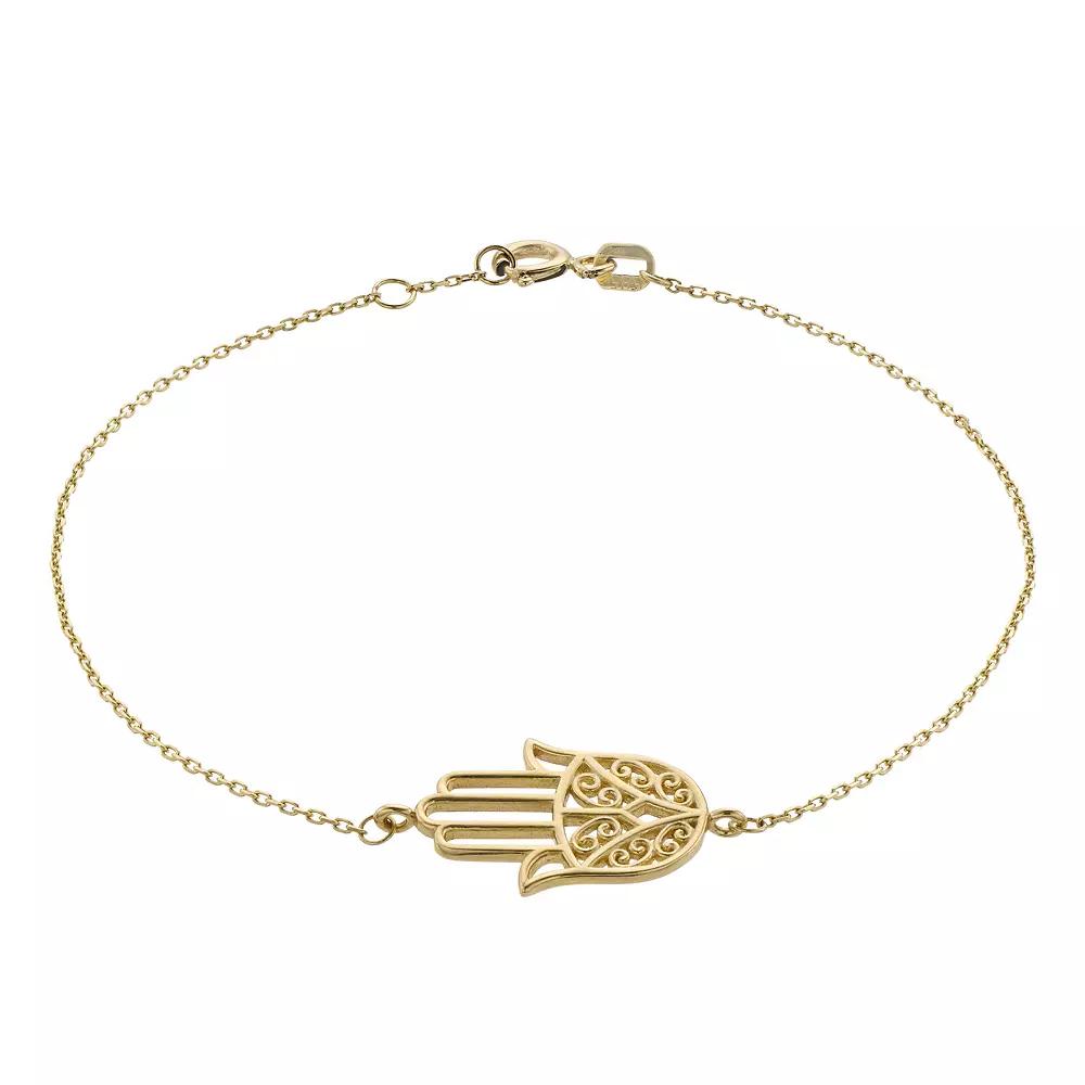 You'll love the charming style of this 14k Gold Hamsa Bracelet. Click on this JEWELRY & WATCHES GUIDE to learn about fit, styles, materials and more! You'll love the charming style of this 14k Gold Hamsa Bracelet. Click on this JEWELRY & WATCHES GUIDE to learn about fit, styles, materials and more! FEATURES Length: 7 in. Clasp: spring-ring Metal: 14k gold Finish: polished Packaging: boxed Nickel free Size: 7". Gender: female. Age Group: adult.