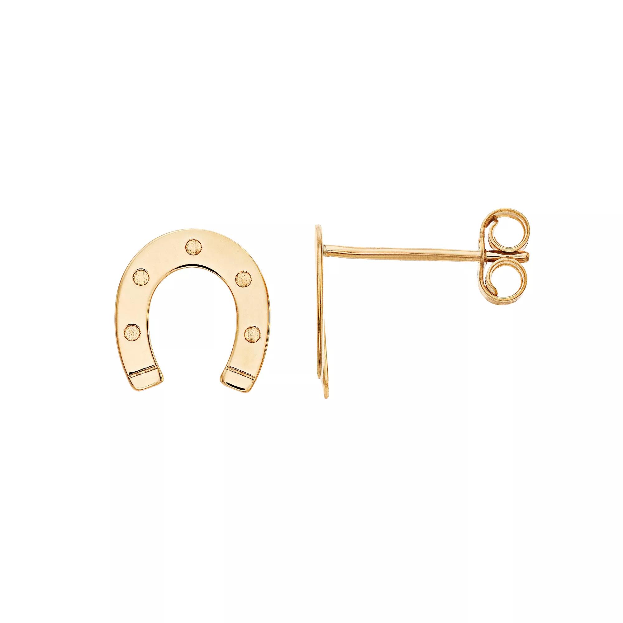 The detailed horseshoes silhouetted on these golden stud earrings signify good luck. 14K yellow gold Post back Imported SIZE 0.33"W x 0.34"L Click here for a Guide to Jewelry & Watches. Center Core - W Fine Jewelry > Saks Off 5th > Barneys Warehouse. Saks Fifth Avenue.