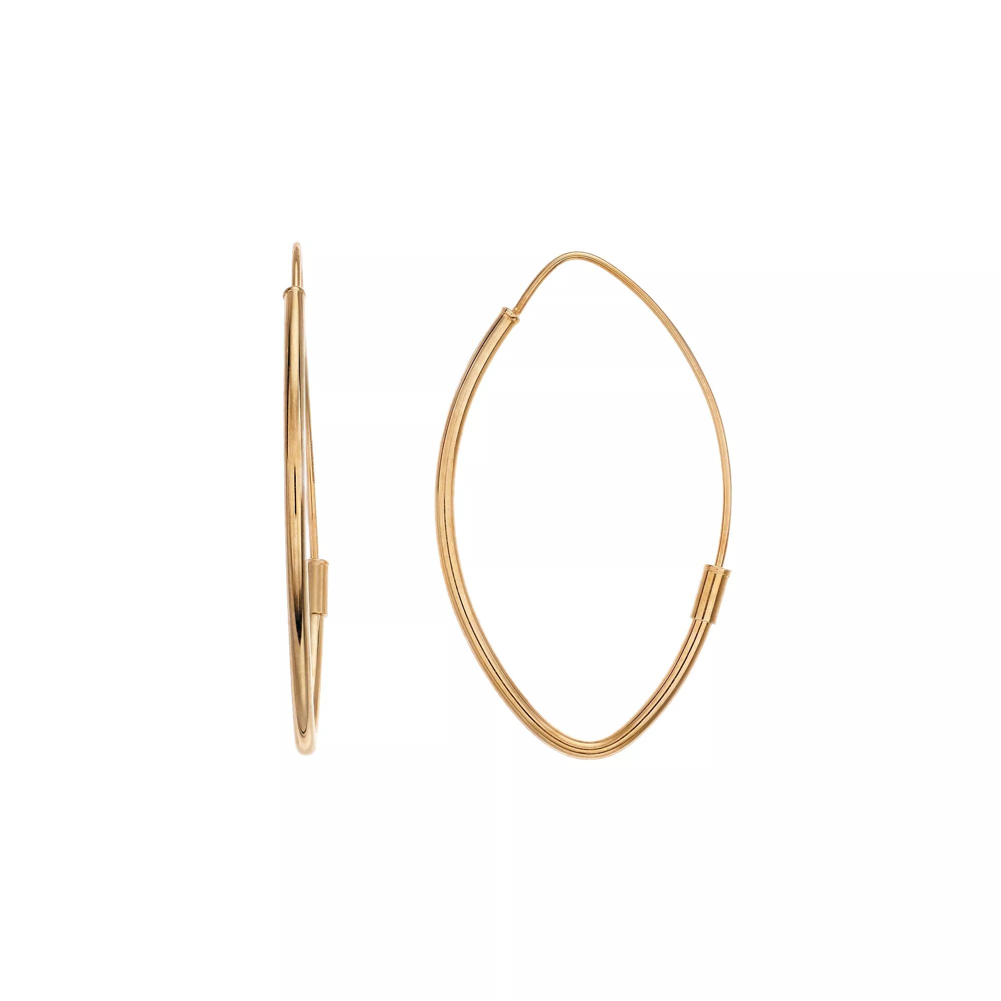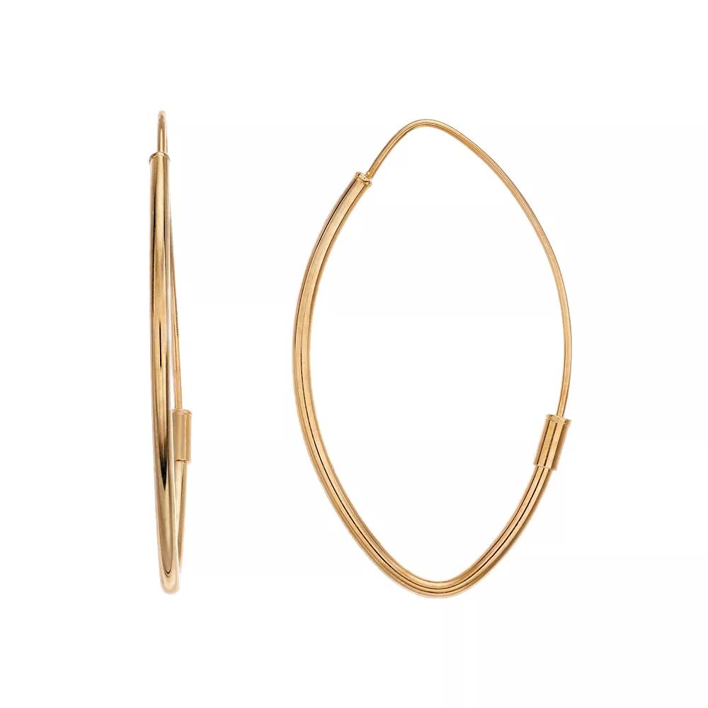 Add eye-catching style to our look with these 14k gold marquise hoop earrings. Add eye-catching style to our look with these 14k gold marquise hoop earrings. Length: 35.3 mm Metal: 14k gold Finish: polished Packaging: boxed Please note, due to the high value of this item, a signature may be required upon delivery. Size: One Size. Color: Yellow. Gender: female. Age Group: adult.