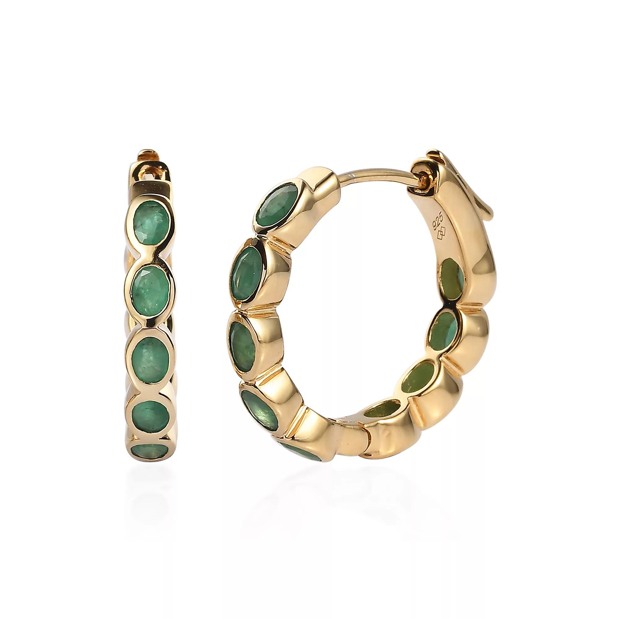 Complete your look with these stunning natural emerald inside out hoop earrings. Click on this JEWELRY & WATCHES GUIDE to learn about fit, styles, materials and more! Complete your look with these stunning natural emerald inside out hoop earrings. Click on this JEWELRY & WATCHES GUIDE to learn about fit, styles, materials and more! FEATURES 21.80 mm x 4 mm x 22 mm Backings: click-it Metal: sterling silver Plating: 14k gold Finish: polished Packaging: boxed Imported Nickel safeSTONE DETAILS Stone type: emerald Total weight: 3 1/4 ct. Shape: oval Setting: bezel Gemstones may have been treated to enhance their appearance. Special care may be required. Please visit our Gemstone Treatment & Special Care Guide for more information. Size: One Size. Color: Green. Gender: female. Age Group: adult. Material: Gold Over Sterling.