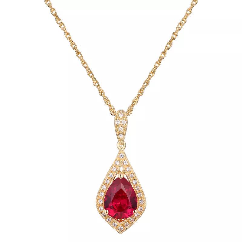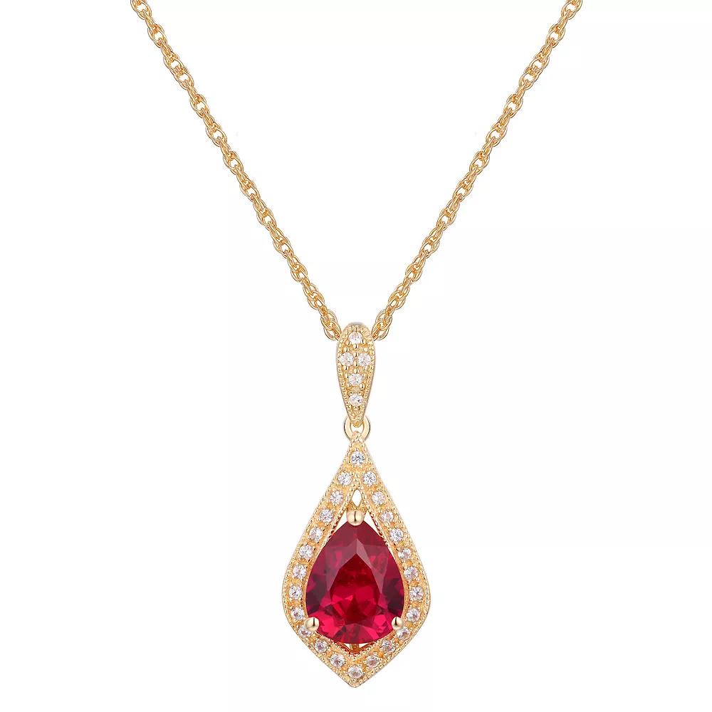 Add a touch of elegance to your wardrobe with this 14k gold over sterling silver gemstone with lab-created white sapphire accents pendant necklace. Click on this JEWELRY & WATCHES GUIDE to learn about fit, styles, materials and more! Add a touch of elegance to your wardrobe with this 14k gold over sterling silver gemstone with lab-created white sapphire accents pendant necklace. Click on this JEWELRY & WATCHES GUIDE to learn about fit, styles, materials and more! FEATURES Opal Pendant dimensions: 1 in. L x 7/16 in. WSapphire, Ruby, Emerald, Garnet, Citrine Pendant dimensions: 1-1/8 in. L x 4/8 in. W Lab-created white sapphire accents Chain length: 18 in. Chain type: rope Clasp: spring-ring Metal: sterling silver Plating: 14k gold Finish: milgrain and polished ImportedSTONE DETAILS Stone types: lab-created emerald, garnet, lab-created opal, lab-created ruby, citrine, lab-created sapphire Emerald, Citrine Total weight: 1 1/2 ct.Opal Total weight: 7/8 ct.Sapphire, Ruby Total weight: 2 1/3 ct.Garnet Total weight: 1 3/4 ct. Emerald, Citrine Center stone weight: 1 3/8 ct.Opal Center stone weight: 3/4 ct.Sapphire, Ruby Center stone weight: 2 1/5 ct.Garnet Center stone weight: 1 1/2 ct. Center Stone Size: 9 mm x 7 mm Shape: pear Setting: prong Gemstones may have been treated to enhance their appearance. Special care may be required. Please visit our Gemstone Treatment & Special Care Guide for more information. Size: 18. Gender: female. Age Group: adult.
