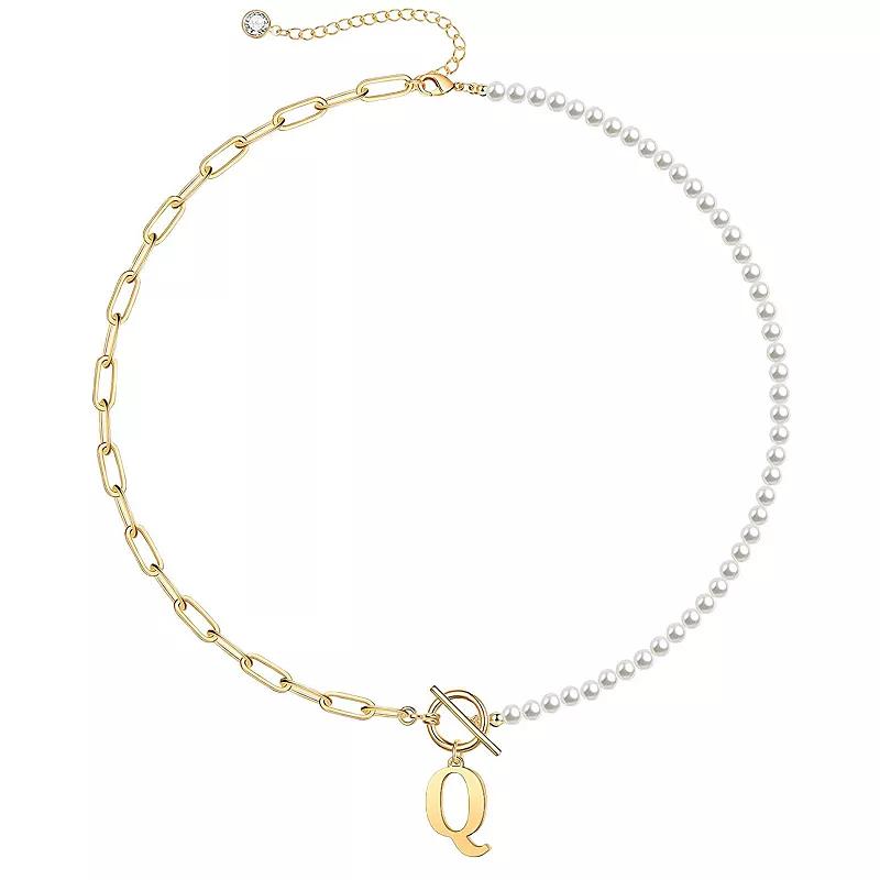 Personalize your style with this 14k Gold Plated Initial Link Chain Necklace. Click on this JEWELRY & WATCHES GUIDE to learn about fit, styles, materials and more! Personalize your style with this 14k Gold Plated Initial Link Chain Necklace. Click on this JEWELRY & WATCHES GUIDE to learn about fit, styles, materials and more! FEATURES Chain length: 16 in. + 2-in. extender Chain type: link Closure: toggle Nickel free Metal: brass Plating: 14k gold Finish: polished Packaging: velvety pouch Imported Size: 16-18 ADJ. Color: Gold Tone Q. Gender: female. Age Group: adult.