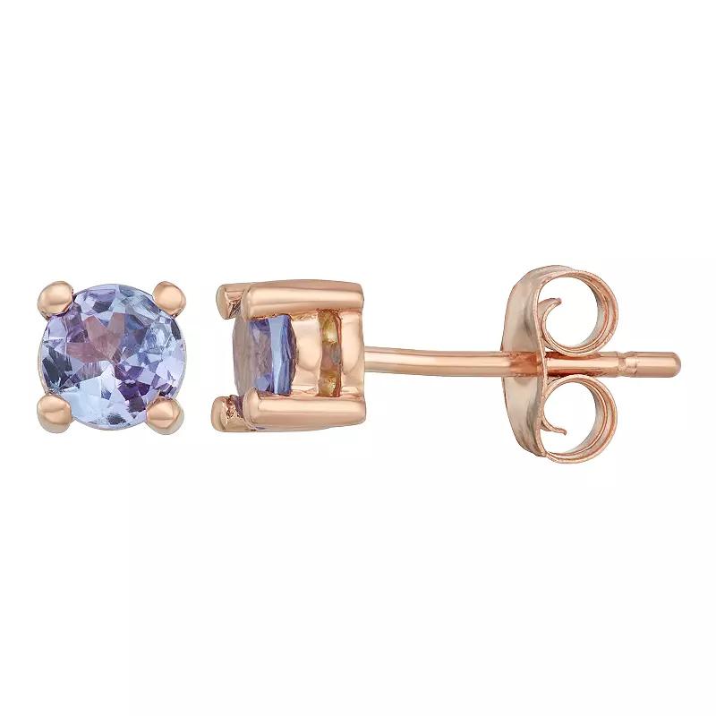 Add a lovely finishing touch to your attire with these classically stylish 14k gold tanzanite stud earrings. Add a lovely finishing touch to your attire with these classically stylish 14k gold tanzanite stud earrings. Diameter: 4.25 mm Backings: post Metal: 14k rose gold Finish: polished Packaging: boxedSTONE DETAILS Stone type: tanzanite Stone size: 4 mm Shape: round Setting: prongGemstones may have been treated to enhance their appearance. Special care may be required. Please visit our Gemstone Treatment & Special Care Guide for more information.Please note, due to the high value of this item, a signature may be required upon delivery. Color: Purple. Gender: female. Age Group: adult.