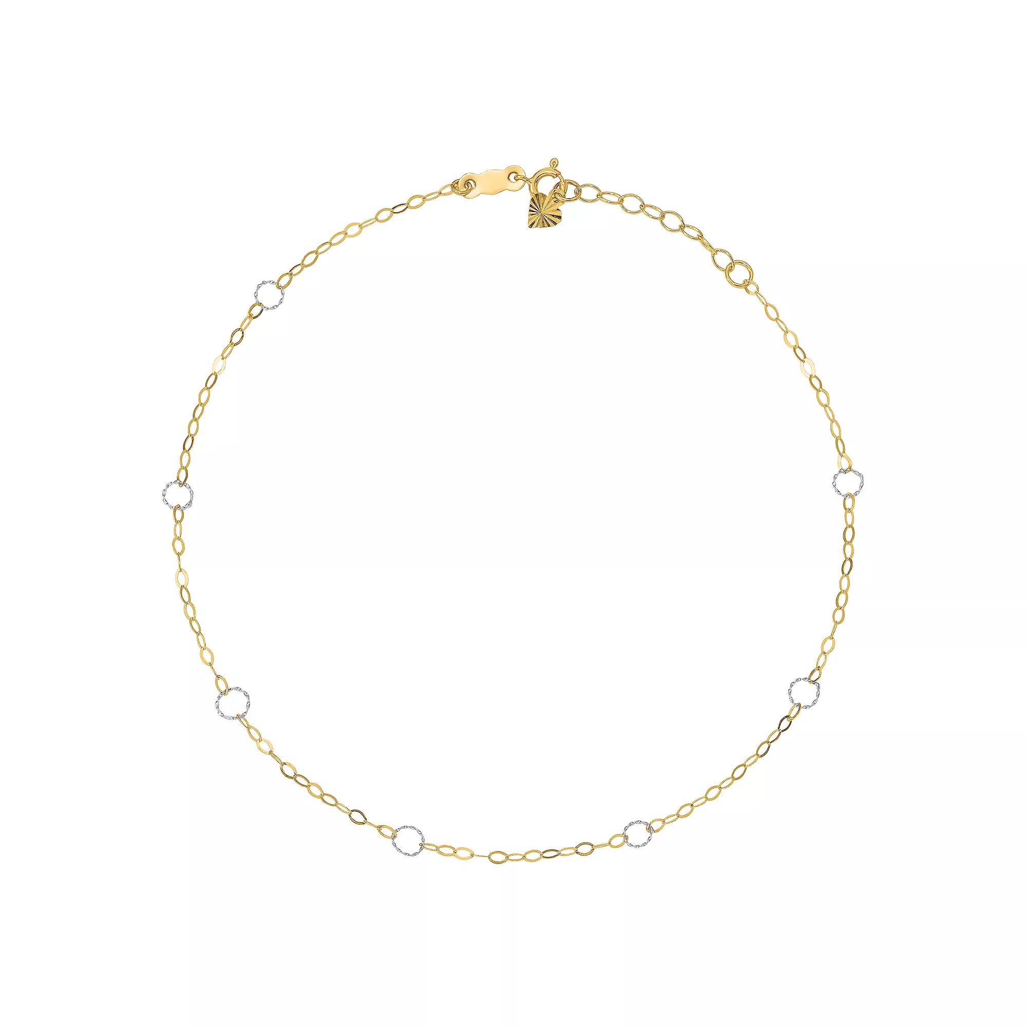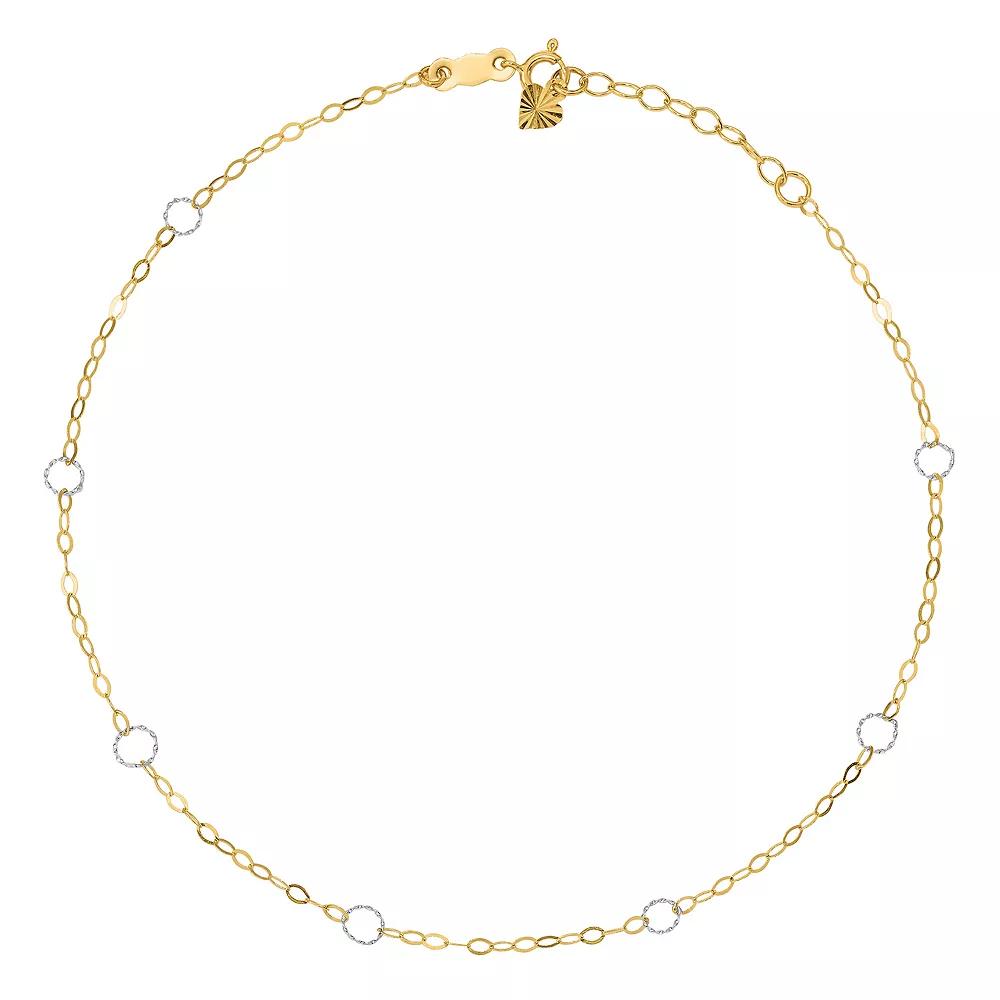 At Quality Gold, our team of designers and buyers draw inspiration from global trends to bring stylish and elegant jewelry to a wide spectrum of customers ranging from traditional to the modern kind. Our elegant designs accompanied with unparalleled service have earned us reputation among our customers. FeaturesAdds a sense of charm to your favorite collectionElegant and simple accessory for any seasonPolished, 14K two-tone, spring ring, 1 in. extender, adjustableSpecificationsMetal: 14K Two-ToneFinish: PolishedMaterial Purity: 14KChain Length: 9"Chain Width: 4 mmClasp & Connector: Spring RingExtender Length: 1"Feature: AdjustableManufacturing Process: Wire FormedPrimary Material: GoldAnklet Type: Anklets with StationsPrimary Material Color: Two-ToneFeature 2: SolidCountry of Origin: Indonesia | Quality Gold Ank184-9 4 Mm X 9 In. 14K Two-Tone Adjustable Circle Anklet