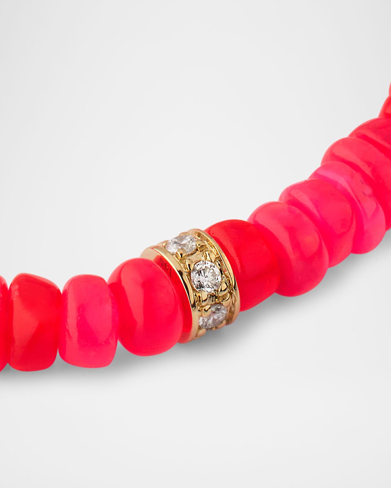 14K Pave Diamond 4mm Wheel on Hot Pink Opal Bracelet