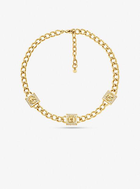 From the Premium Collection. Michael Kors 14K-gold-plated necklace features the labels signature logo-detailed lock stations on a bold chain. Dazzling pav cubic zirconia stones elevate this style, adding a touch of glamour. Cubic zirconia 14K gold-plated brass Lobster clasp Imported SIZE Adjustable 15.9-19.9 length Length: 406MM+50MM, Width: 14.7MM, Height: 15.4MM. Fine Jewelry - Fashion Watches > Michael Kors > Saks Fifth Avenue > Barneys. Michael Kors.