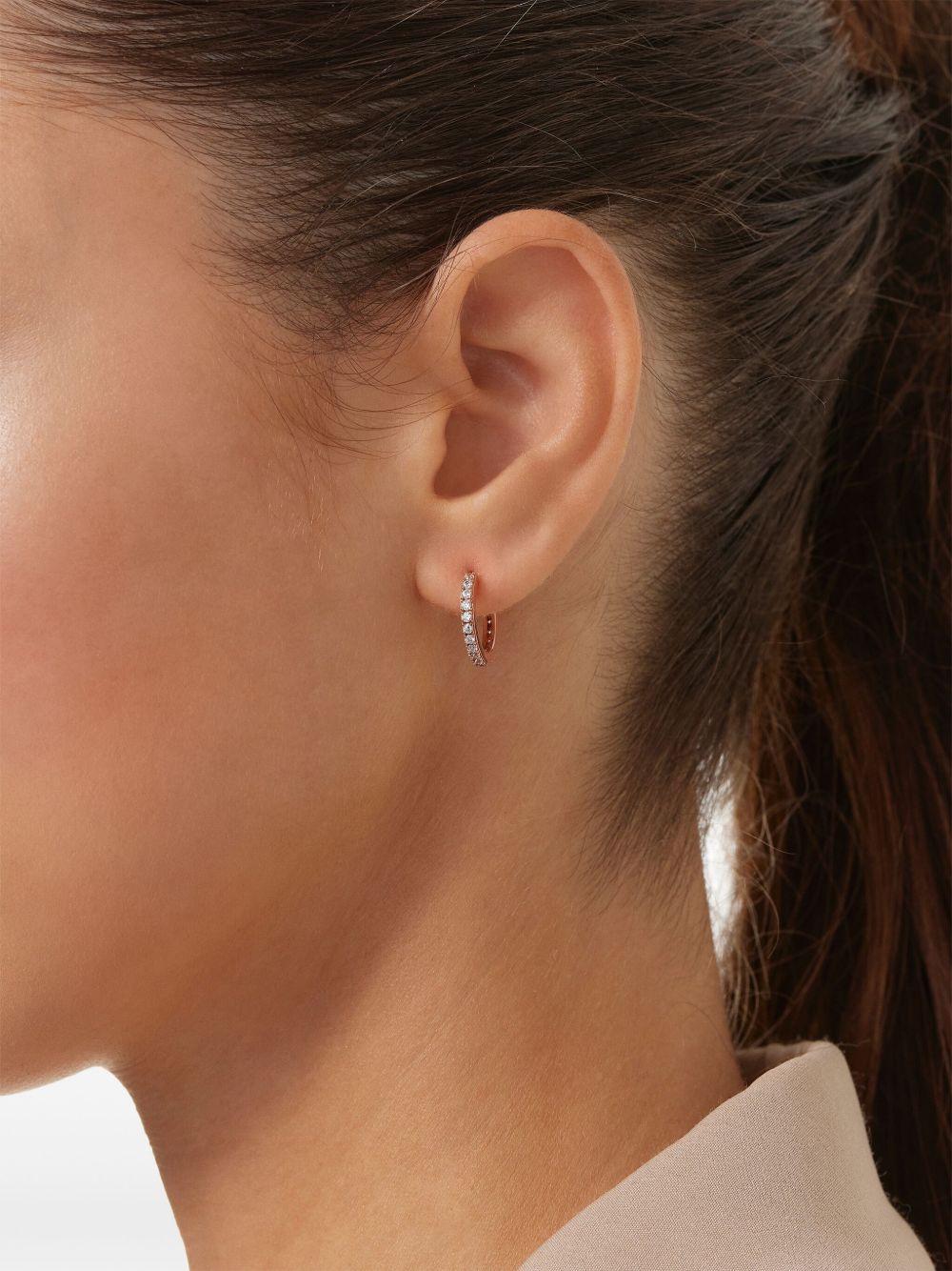 VEYNOU 14k recycled gold and diamond huggie earrings | Pink | Diamond/14K Recycled Rose Gold | Earrings | Jewelry | Women | Earrings | Jewelry | Men
