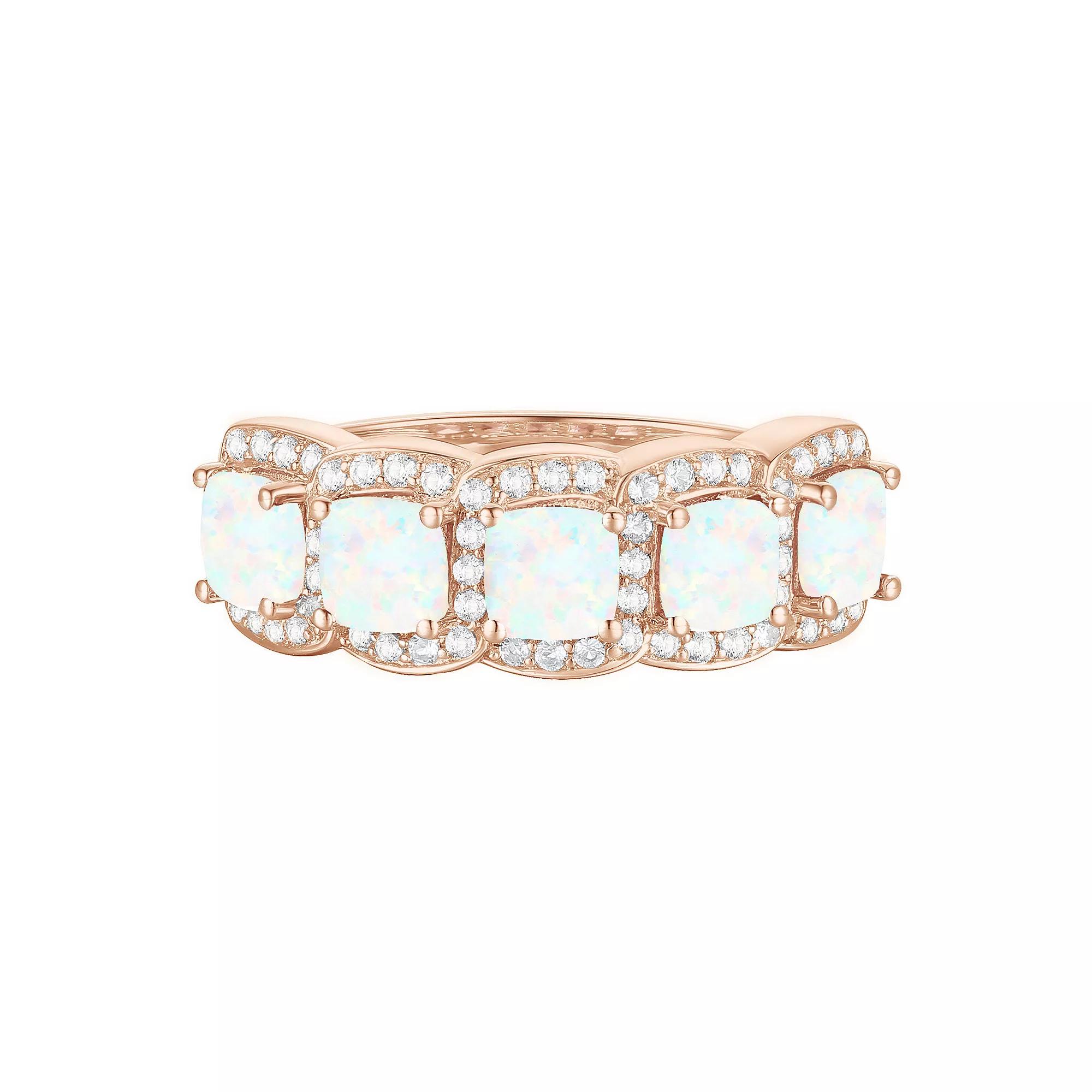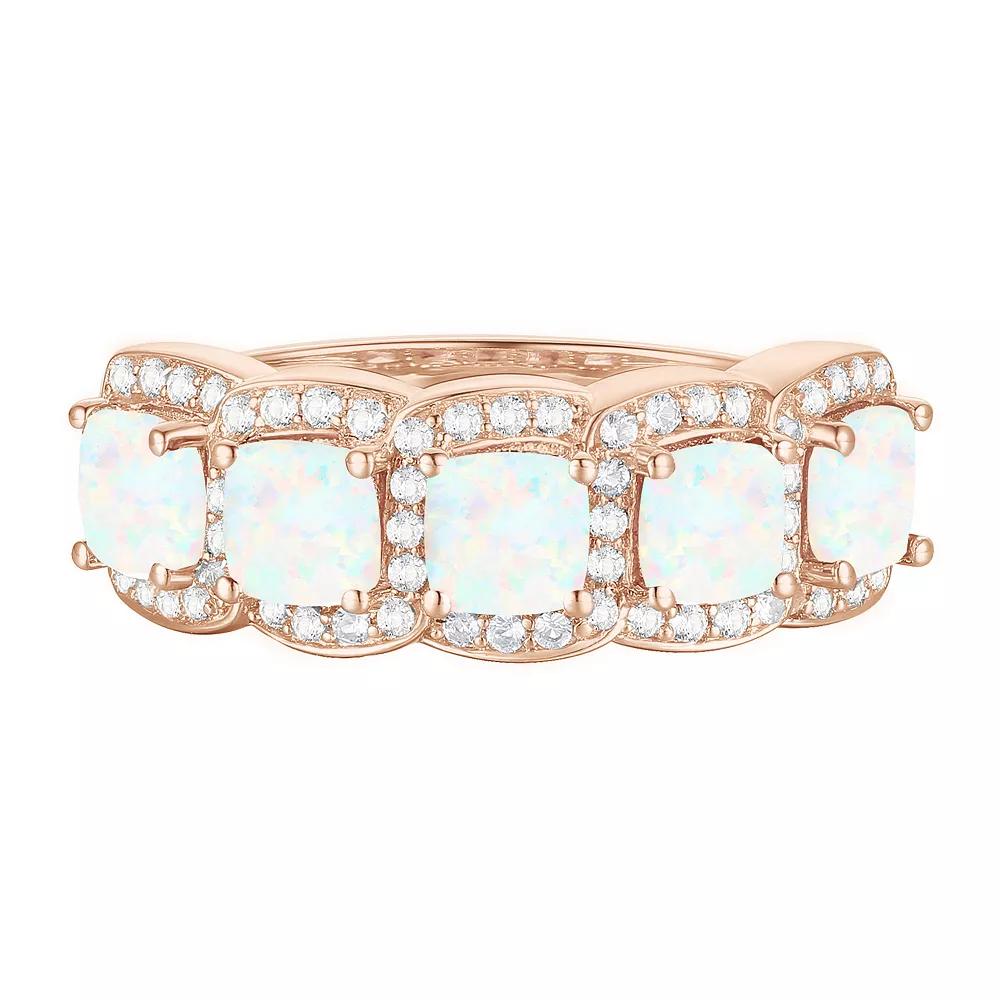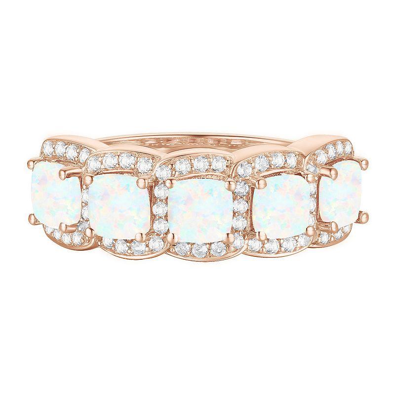 Dress up your look with this 14k Rose Gold Over Silver Lab-Created Opal & White Sapphire Ring. Click on this JEWELRY & WATCHES GUIDE to learn about fit, styles, materials and more! Dress up your look with this 14k Rose Gold Over Silver Lab-Created Opal & White Sapphire Ring. Click on this JEWELRY & WATCHES GUIDE to learn about fit, styles, materials and more! FEATURES Ring width: 19 mm Shank style: traditional Band fit: comfort fit Nickel free Metal: sterling silver Plating: 14k rose gold flash plated Finish: polished Packaging: boxedSTONE DETAILS Stone type: lab-created opal, lab-created white sapphire Total weight: 7/8 ct. Shape: round Setting: prong Gemstones may have been treated to enhance their appearance. Special care may be required. Please visit our Gemstone Treatment & Special Care Guide for more information. Color: Pink. Gender: female. Age Group: adult.