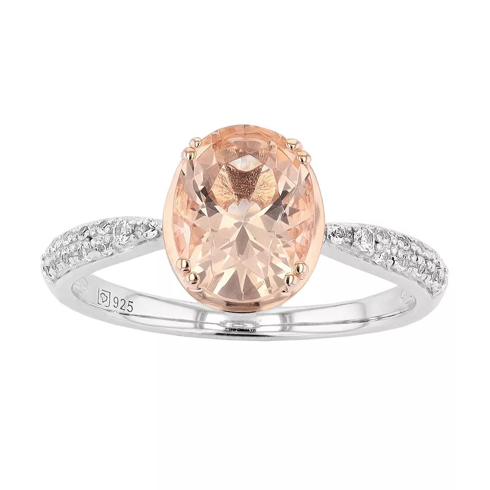 A sophisticated look is simple when you pair this simulated morganite and lab-created white sapphire 3-stone ring with your business or formal attire. A sophisticated look is simple when you pair this simulated morganite and lab-created white sapphire 3-stone ring with your business or formal attire. Metal: sterling silver Plating: rhodium Width: 25.4 mm Finish: polishedSTONE DETAILS Stone type: simulated morganite, lab-created white sapphire Total weight: 1 5/8 ct. Center stone weight: 1 1/2 ct. Center stone size: 9 mm x 7 mm Shape: oval Setting: prong Gemstones may have been treated to enhance their appearance. Special care may be required. Please visit our Gemstone Treatment & Special Care Guide for more information. Color: Pink. Gender: female. Age Group: adult.