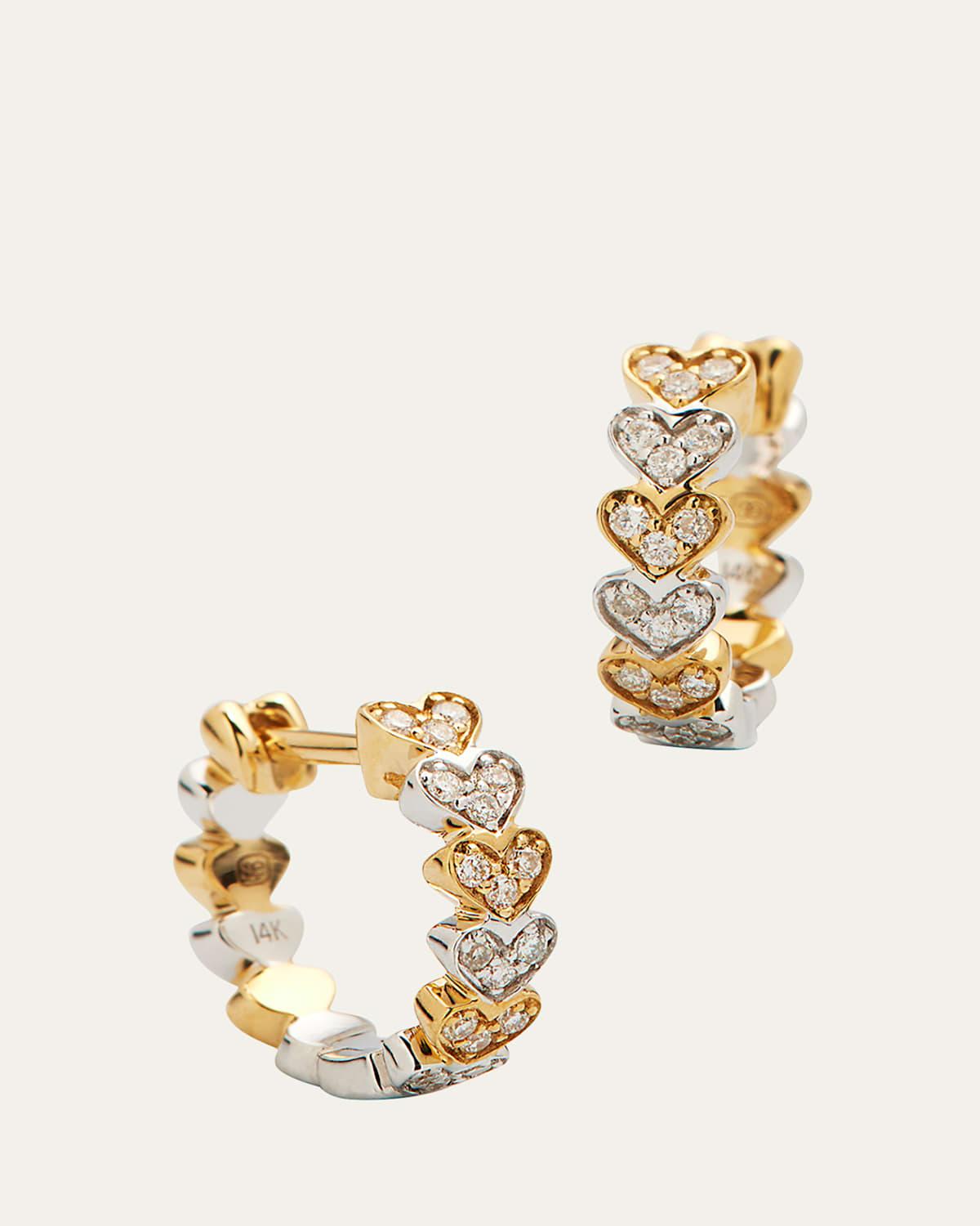 Delicate heart-link huggies shimmer in polished white and yellow gold with diamond pav embellishment. Diamond, 0.13 tcw 14K white and yellow gold Leverback Imported SIZE Drop, about 0.5. Fashion Jewelry - Fashion Designer > Sydney Evan > Saks Fifth Avenue > Barneys. Sydney Evan. Color: Diamond.