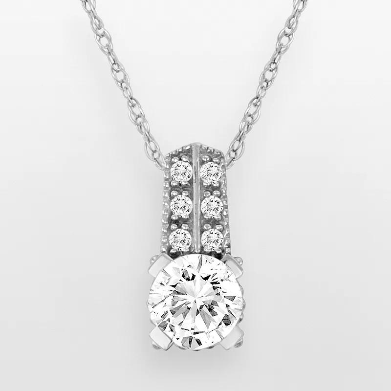 Pendant Details: Pendant length: .5-in. Chain length: 18-in. Clasp: spring-ring Metal: rhodium-plated 14k white gold Cubic Zirconia Details: Cut: round Color: white Setting: prong Size: 18. Color: Multicolor. Gender: female. Age Group: adult.