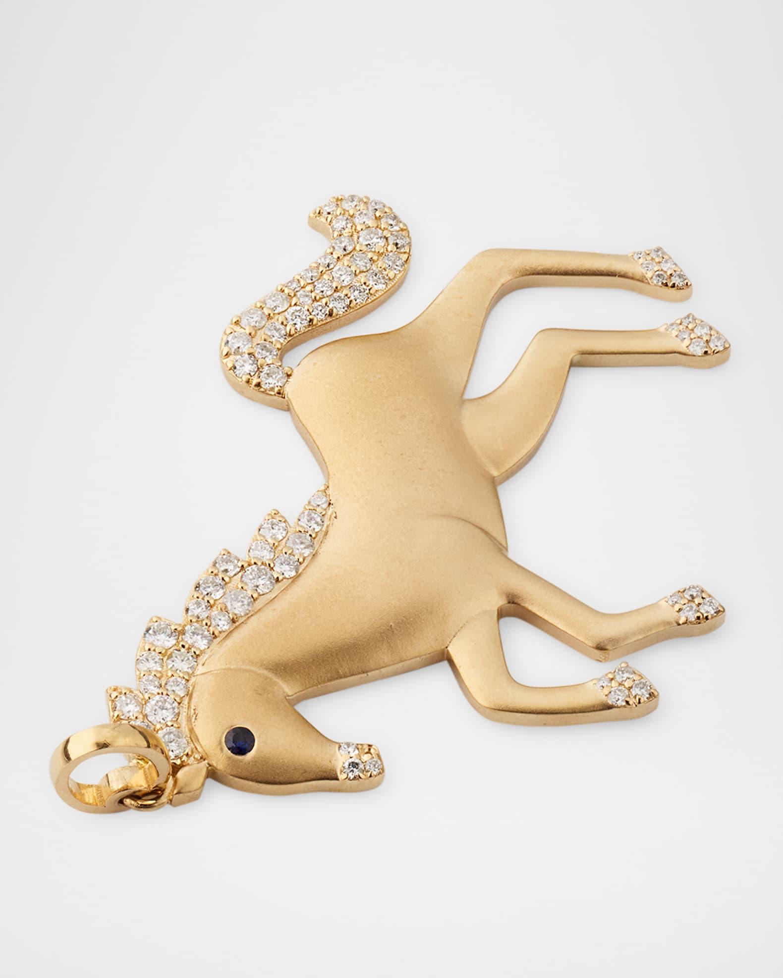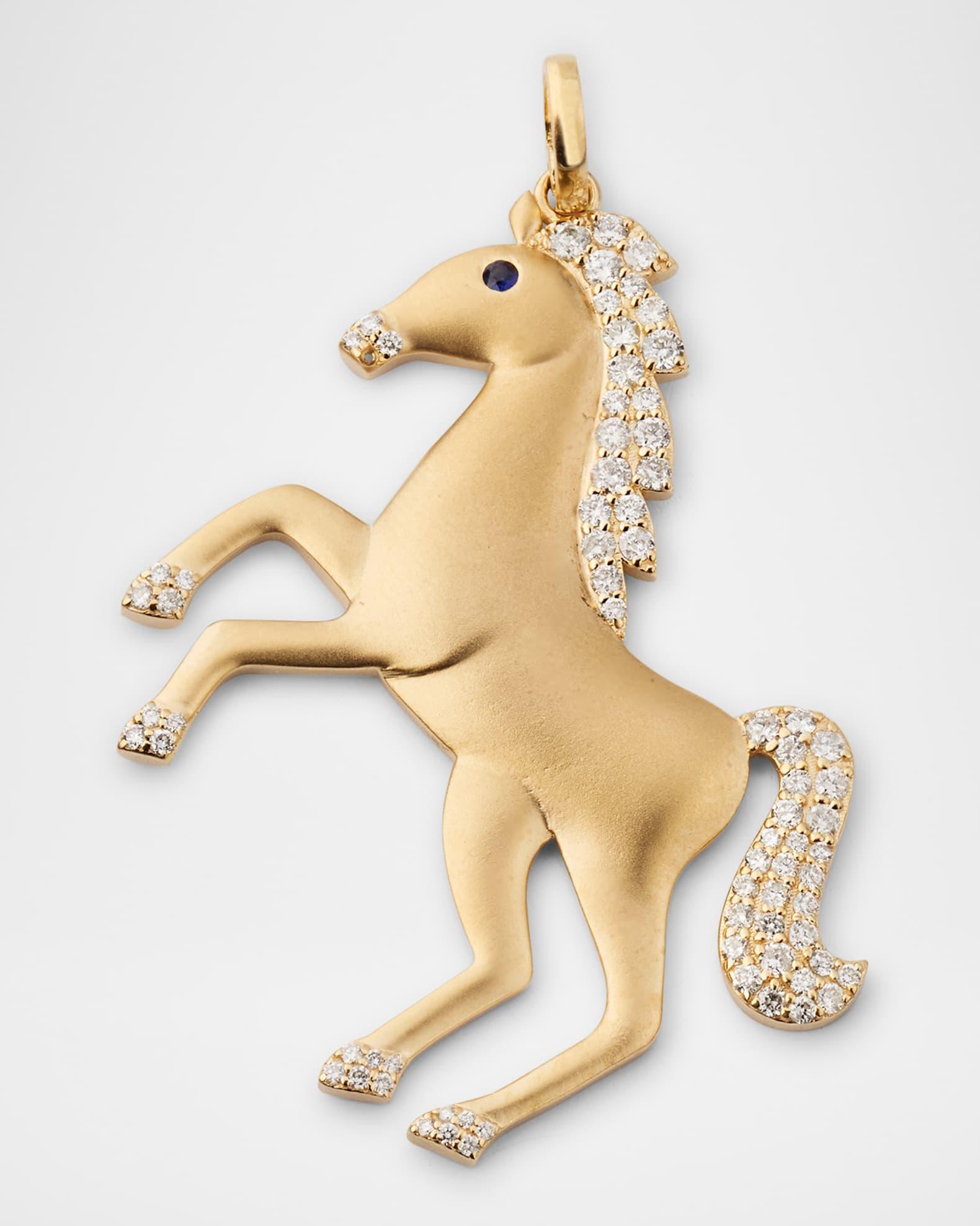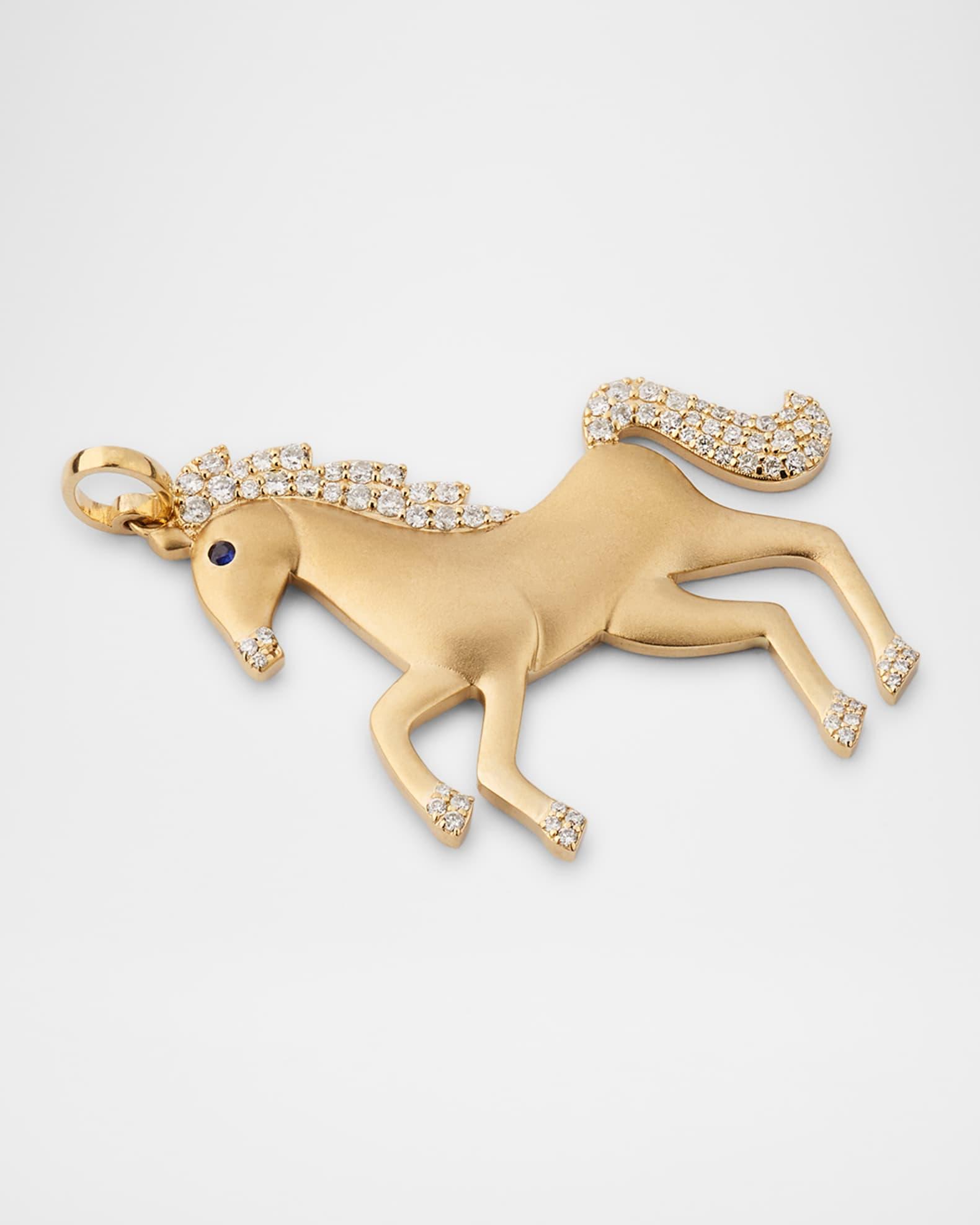 14K Yellow Gold Diamond Horse Charm