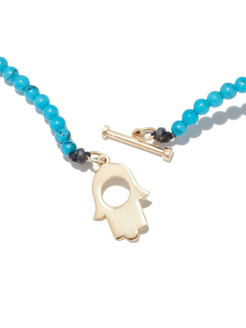 14kt yellow gold Hamsa turquoise necklace