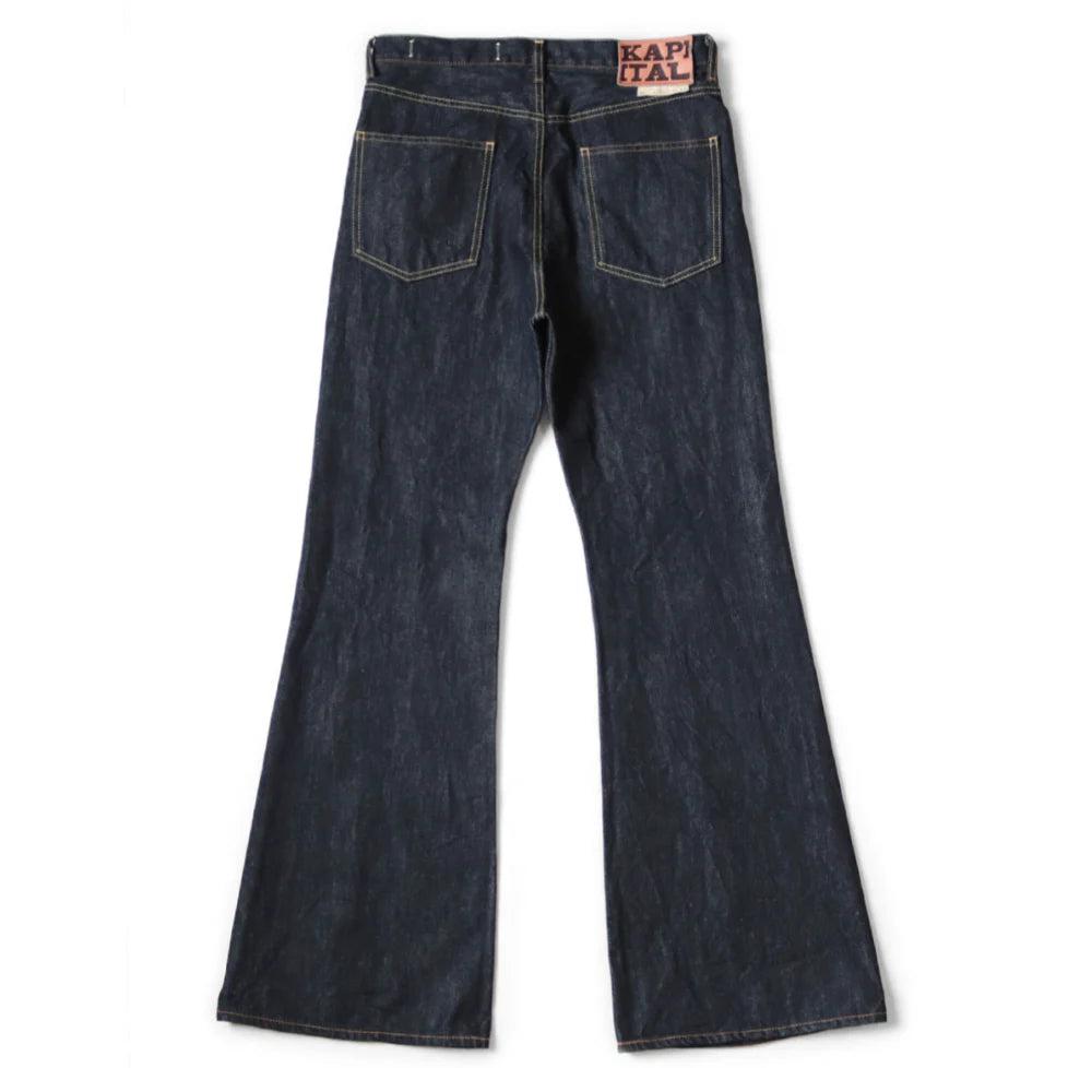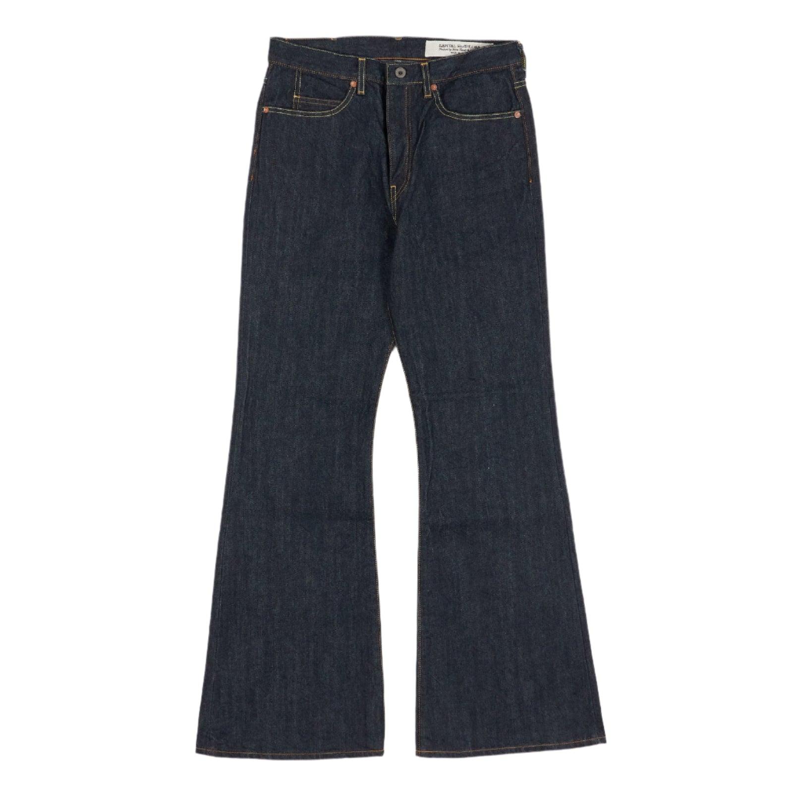 The deep rise and flare silhouette characteristic of the Okabellbo silhouette. *This product uses IDG dyes. When worn, the color may transfer to other clothing.*This product is made of natural leather. Please note that friction, sweat, and other moisture may stain the product. Patch made with cowhide 100% Cotton Made in Japan SLP108