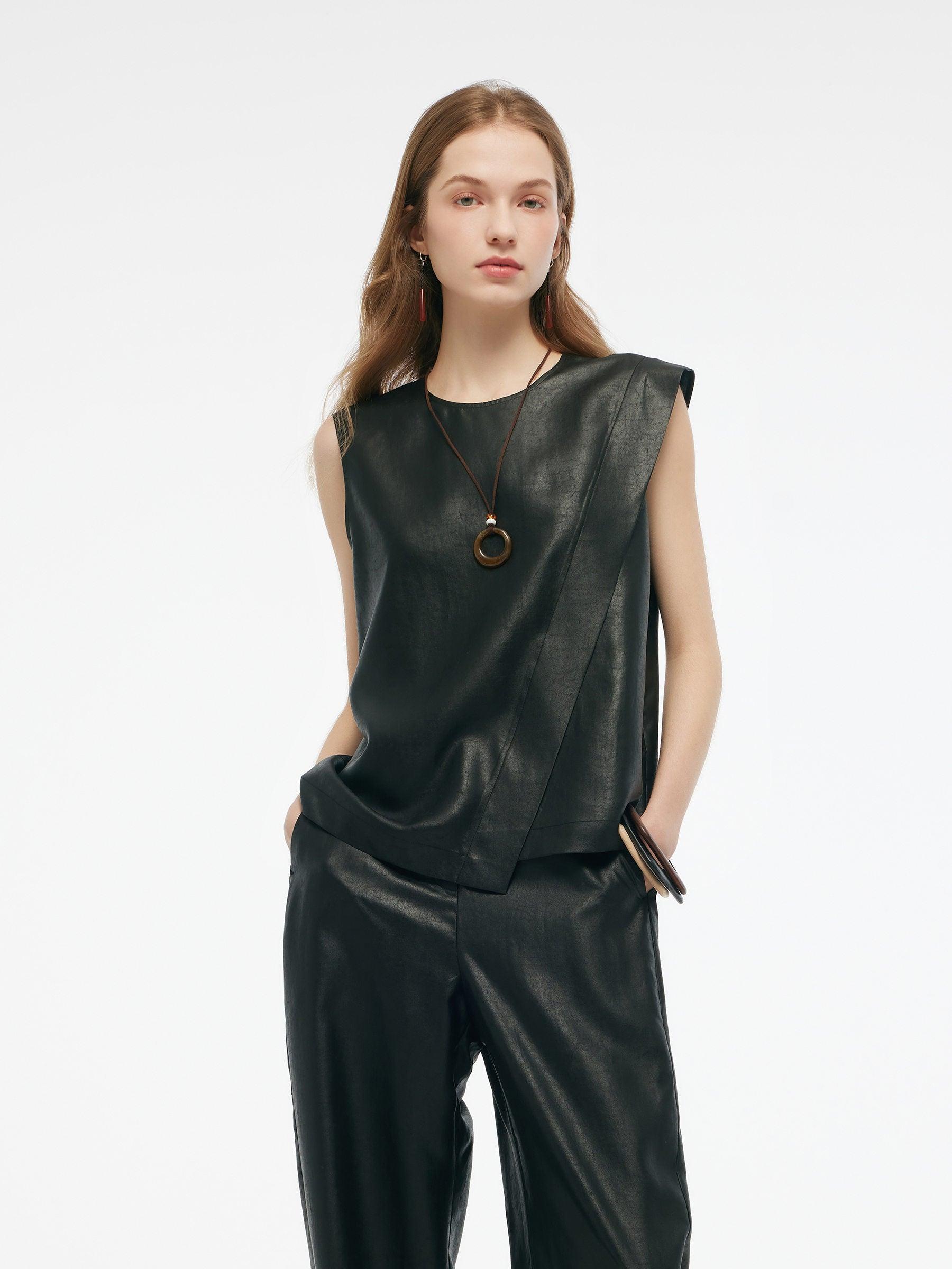 -16MM Xiang Yun Silk -Breathable and soft -Round neck This 16MM Xiang Yun Silk tank top offers a luxurious touch and breathability that keeps you comfortable all day. Its masterful cut features a straight fit that contours to your body without constraining your movements. The asymmetrical diagonal placket adds a layer