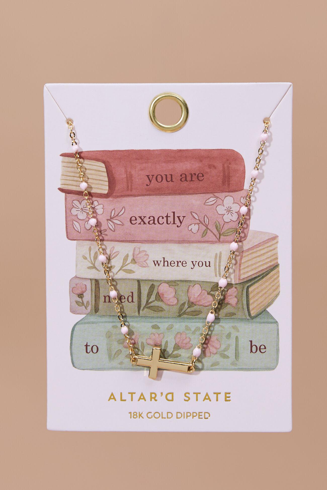Let this necklace be a gentle reminder: you are exactly where you need to be. The 18K Gold Exactly Where You Need To Be Necklace features a dainty, radiant cross charm on a delicate gold and pink-plated chain, paired with an uplifting message that brings comfort and confidence.