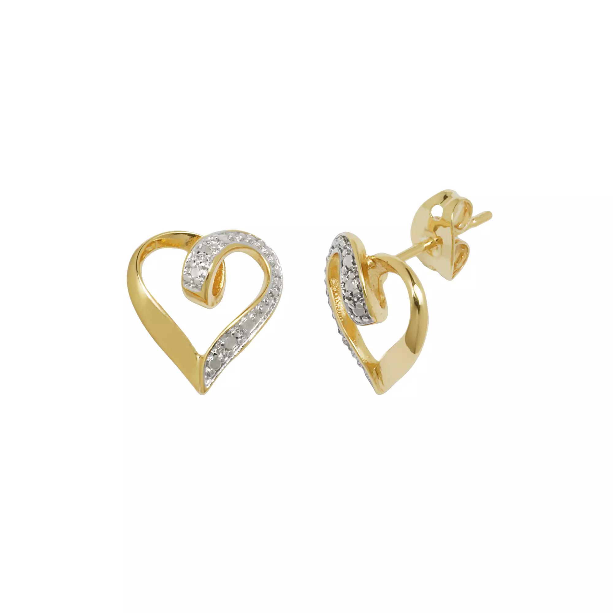Dress up your look with these diamond-accented heart earrings.Earring Details: Length: .44 in. Backings: post Metal: 18k gold over bronze & rhodium over silver-plated bronzeDiamond Details: Total weight: less than 1/10 ct. Cut: rose Setting: paveImage(s) may be enlarged to show detail.Diamond weights are approximate. Diamond total weights may vary between .01 and .08 ct. Some diamonds have fewer than 17 facets.Gemstones may have been treated to enhance their appearance. Special care may be required. Please visit our Gemstone Treatment & Special Care Guide for more information. Size: One Size. Color: White. Gender: female. Age Group: adult. Material: Silver Plate.