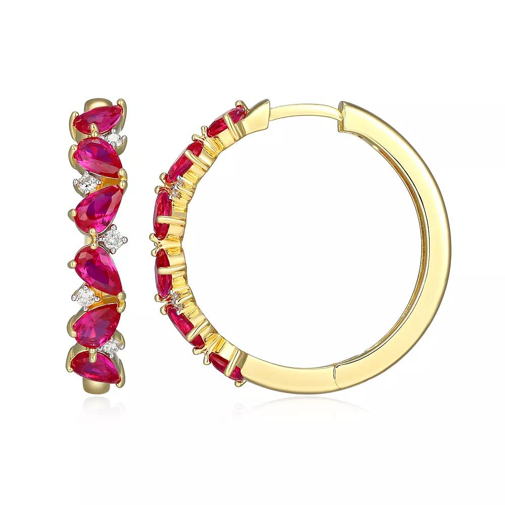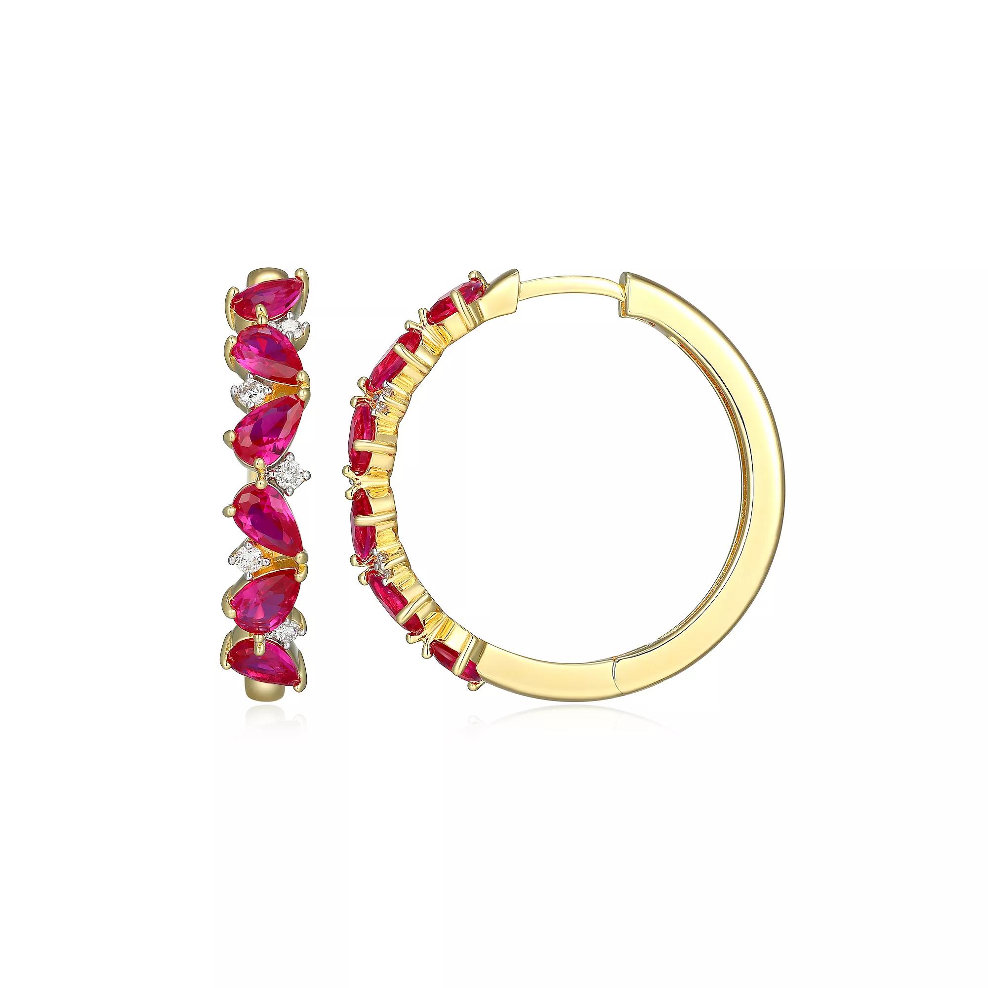 These gorgeous 18k yellow gold over sterling silver 1/6 carat T.W. lab-grown diamond and lab-created ruby huggie hoop earrings is sure to quickly become a favorite piece in any jewelry collection. Click on this JEWELRY & WATCHES GUIDE to learn about fit, styles, materials and more! BENEFITS OF LAB-GROWN DIAMONDS Offer essentially the same physical, chemical and optical properties as mined diamondsLab-grown diamonds are larger, and offer a higher quality than mined diamonds of the same price Each stone is conflict-free These gorgeous 18k yellow gold over sterling silver 1/6 carat T.W. lab-grown diamond and lab-created ruby huggie hoop earrings is sure to quickly become a favorite piece in any jewelry collection. Click on this JEWELRY & WATCHES GUIDE to learn about fit, styles, materials and more! BENEFITS OF LAB-GROWN DIAMONDS Offer essentially the same physical, chemical and optical properties as mined diamonds Lab-grown diamonds are larger, and offer a higher quality than mined diamonds of the same price Each stone is conflict-free FEATURES Earring dimenions: 25.28 mm x 5.03 mm Backings: click-it Nickel safe Metal: sterling silver Plating: 18k gold, rhodium Finish: polished Packaging: boxed ImportedSTONE DETAILS Stone type: lab-created ruby Shape: pear Setting: prongDIAMOND DETAILS Total weight: 1/6 ct. Color grade: G-H Clarity grade: SI1-SI3 Shape: round Setting: prong Diamond weights are approximate. Diamond Total Weights may vary between .01 and .13 ct. Some diamonds consist of fewer than 17 facets. Gemstones may have been treated to enhance their appearance. Special care may be required. Please visit our Gemstone Treatment & Special Care Guide for more information. Image(s) may be enlarged to show detail. Size: One Size. Color: Gold Tone. Gender: female. Age Group: adult.