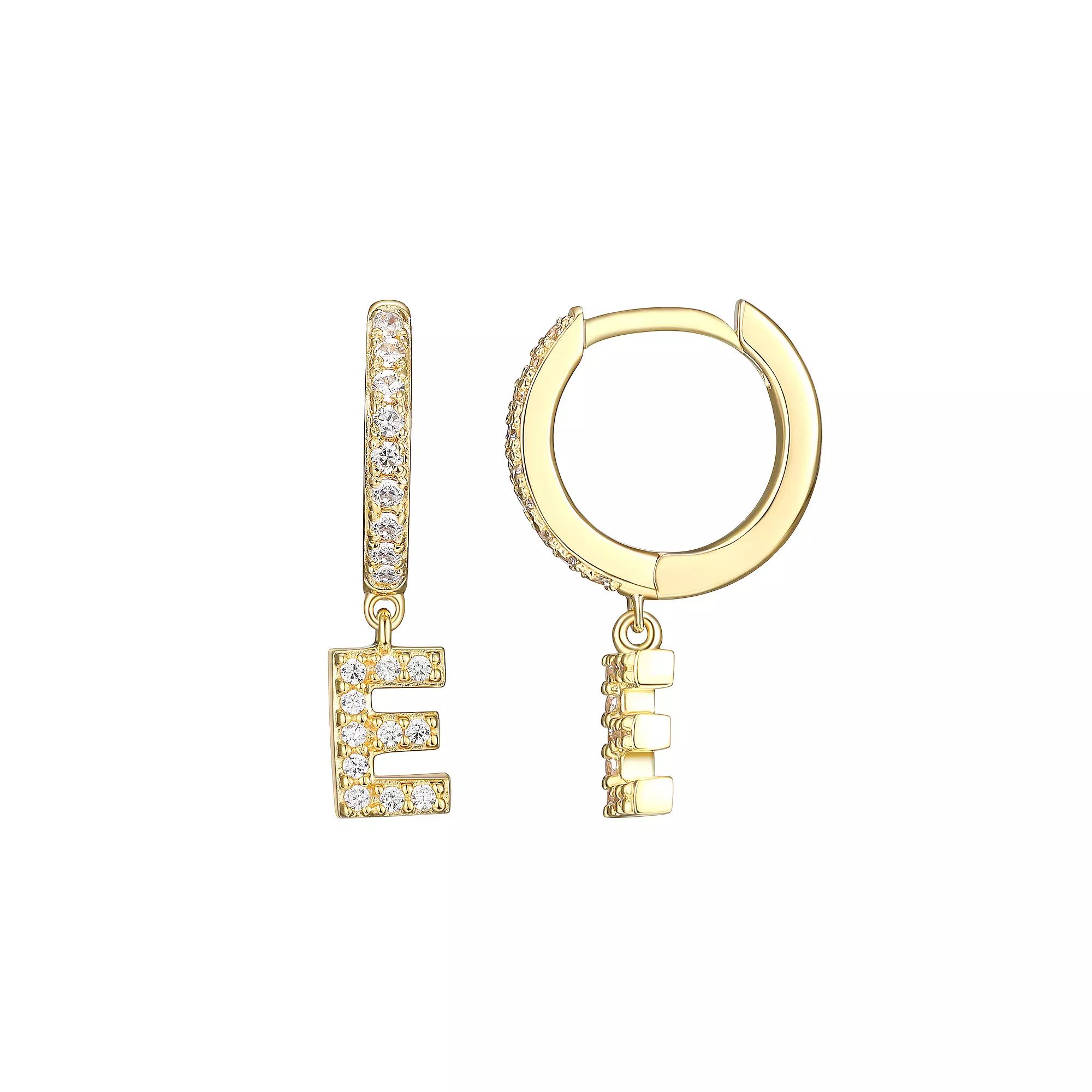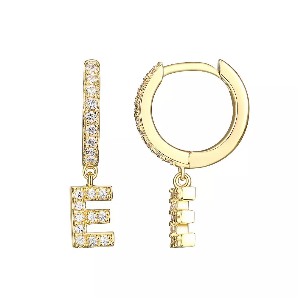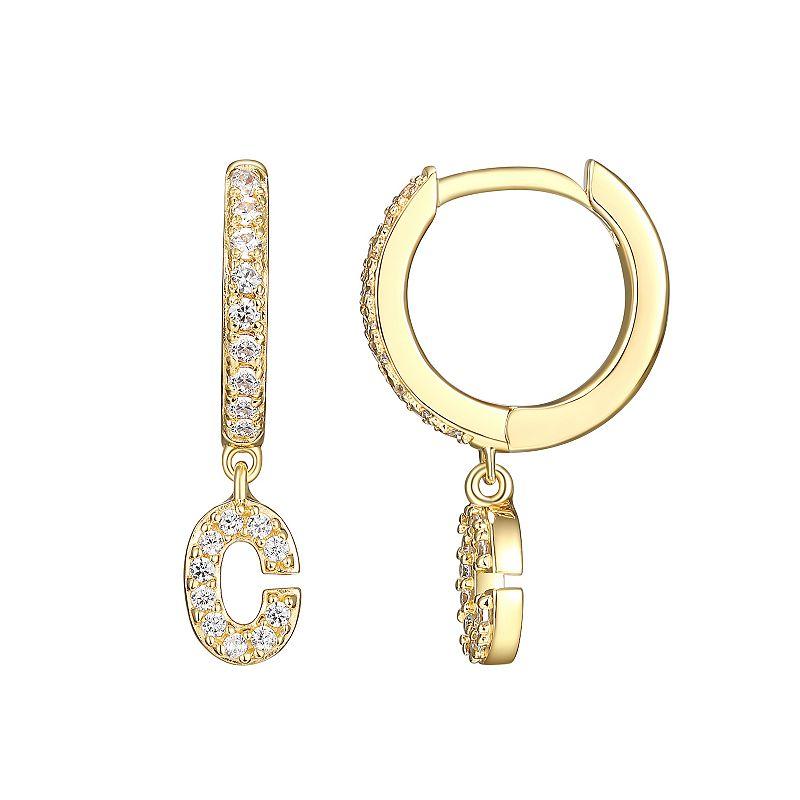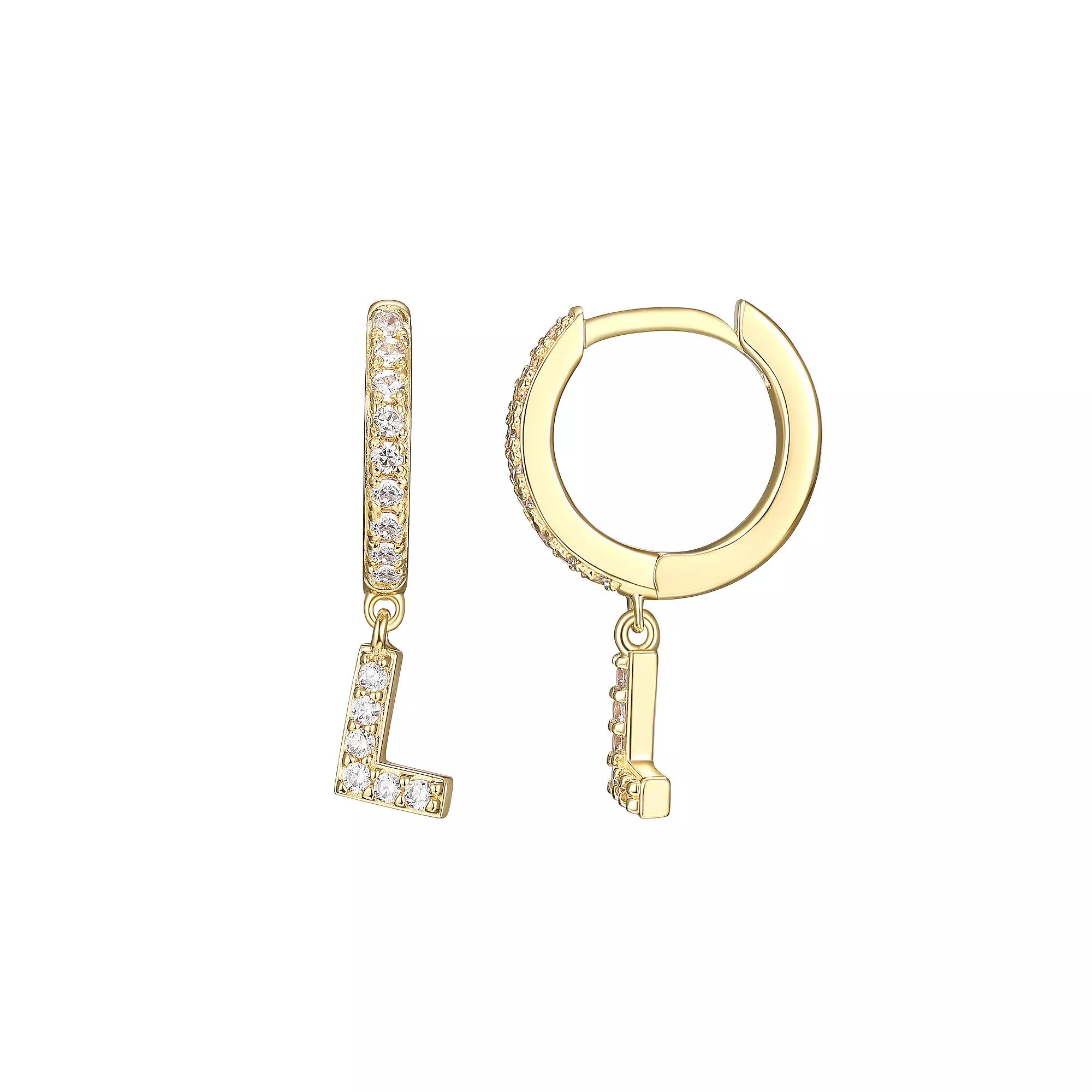 Accessorize with a fun personal style with these initial 18k gold over sterling silver earrings, adorned with cubic zirconia stones for a sparkling finish. Accessorize with a fun personal style with these initial 18k gold over sterling silver earrings, adorned with cubic zirconia stones for a sparkling finish. Nickel free Metal: sterling silver Backings: click-it Packaging: boxed Plating: 18k gold Finish: polished Length: 0.75 in.STONE DETAILS Stone type: cubic zirconia Total weight: 1/2 ct. Shape: round Setting: pave Gemstones may have been treated to enhance their appearance. Special care may be required. Please visit our Gemstone Treatment & Special Care Guide for more information. Size: One Size. Color: White. Gender: female. Age Group: adult.