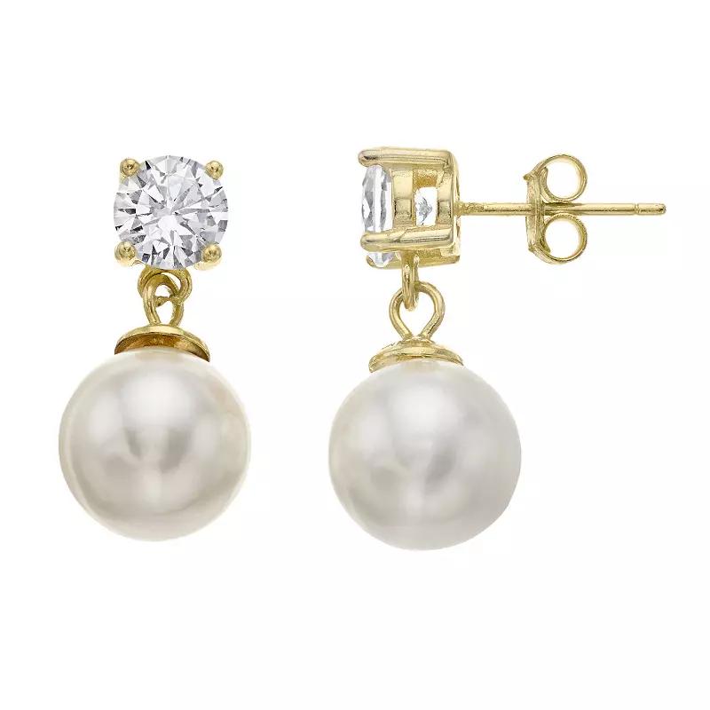 These 18k gold-over-silver freshwater cultured pearl drop earrings are a must-add to your jewelry collection. These 18k gold-over-silver freshwater cultured pearl drop earrings are a must-add to your jewelry collection. Metal: sterling silver Backings: post Plating: 18k rose gold Packaging: boxed Finish: polished Length: 18 mmCULTURED PEARL DETAILS Type: freshwater Size: 8 mm Shape: round Color: white Gemstones may have been treated to enhance their appearance. Special care may be required. Please visit our Gemstone Treatment & Special Care Guide for more information. Please note, due to the high value of this item, a signature may be required upon delivery. Size: One Size. Gender: female. Age Group: adult. Material: Gold Over Sterling.