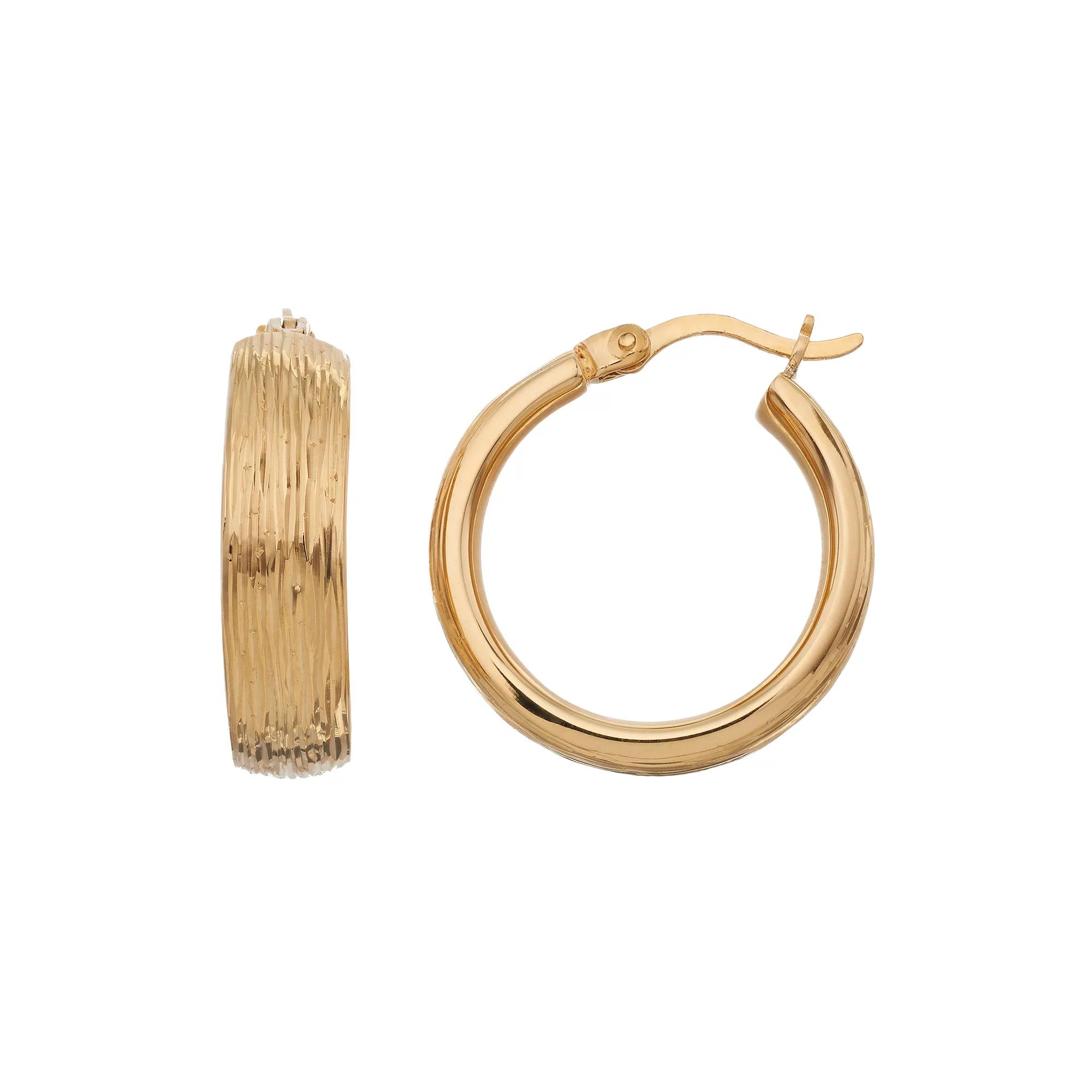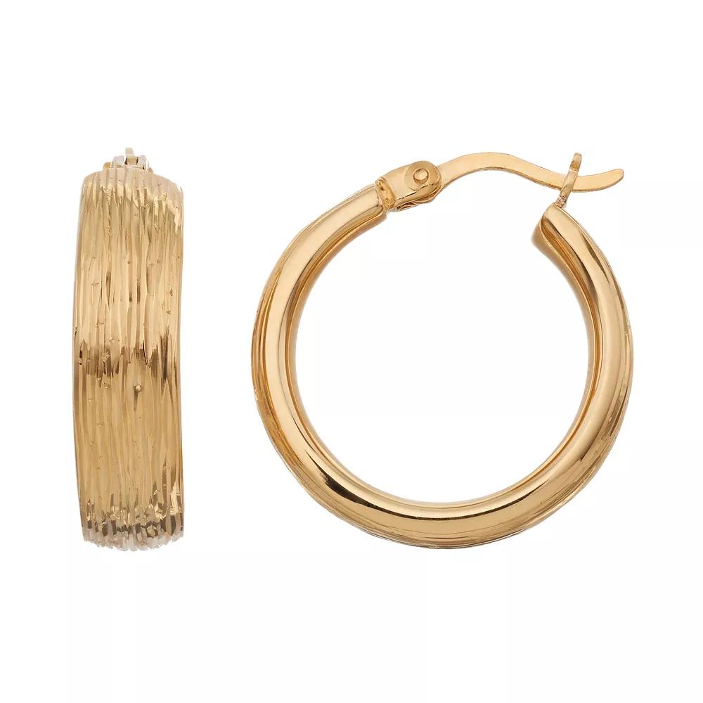 Decorated with textured details, these 18k gold over sterling silver hoop earrings offer striking style.EARRING DETAILS Length: .75 in. Backings: click-it Metal: 18k gold over sterling silver Size: One Size. Color: Yellow. Gender: female. Age Group: adult.