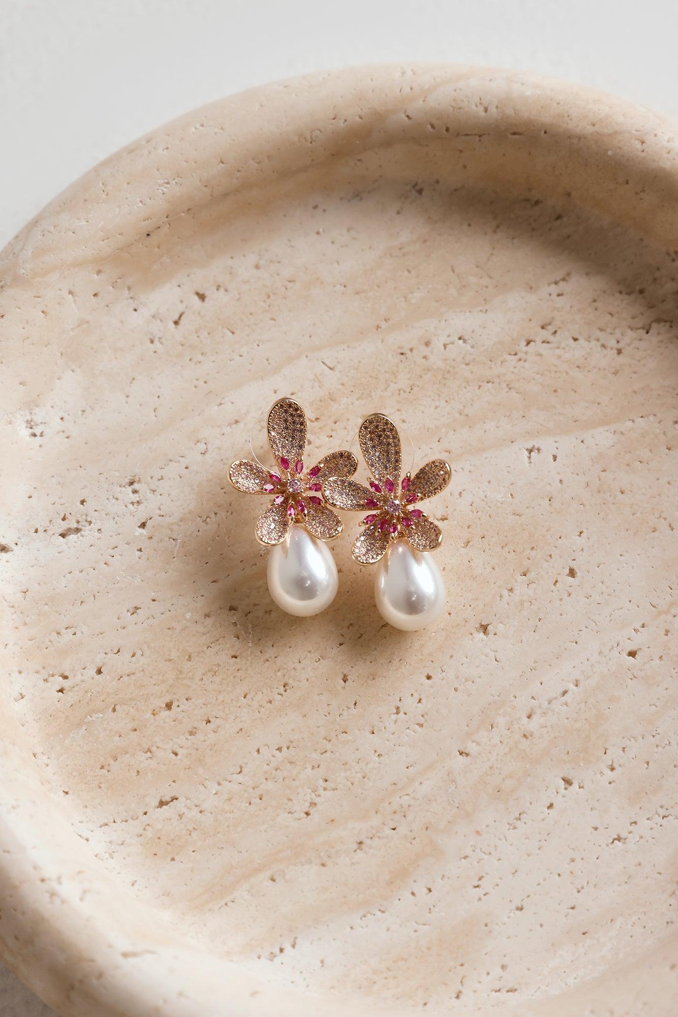 18k Gold Plated Daisy Diamond Flower Earrings Gold