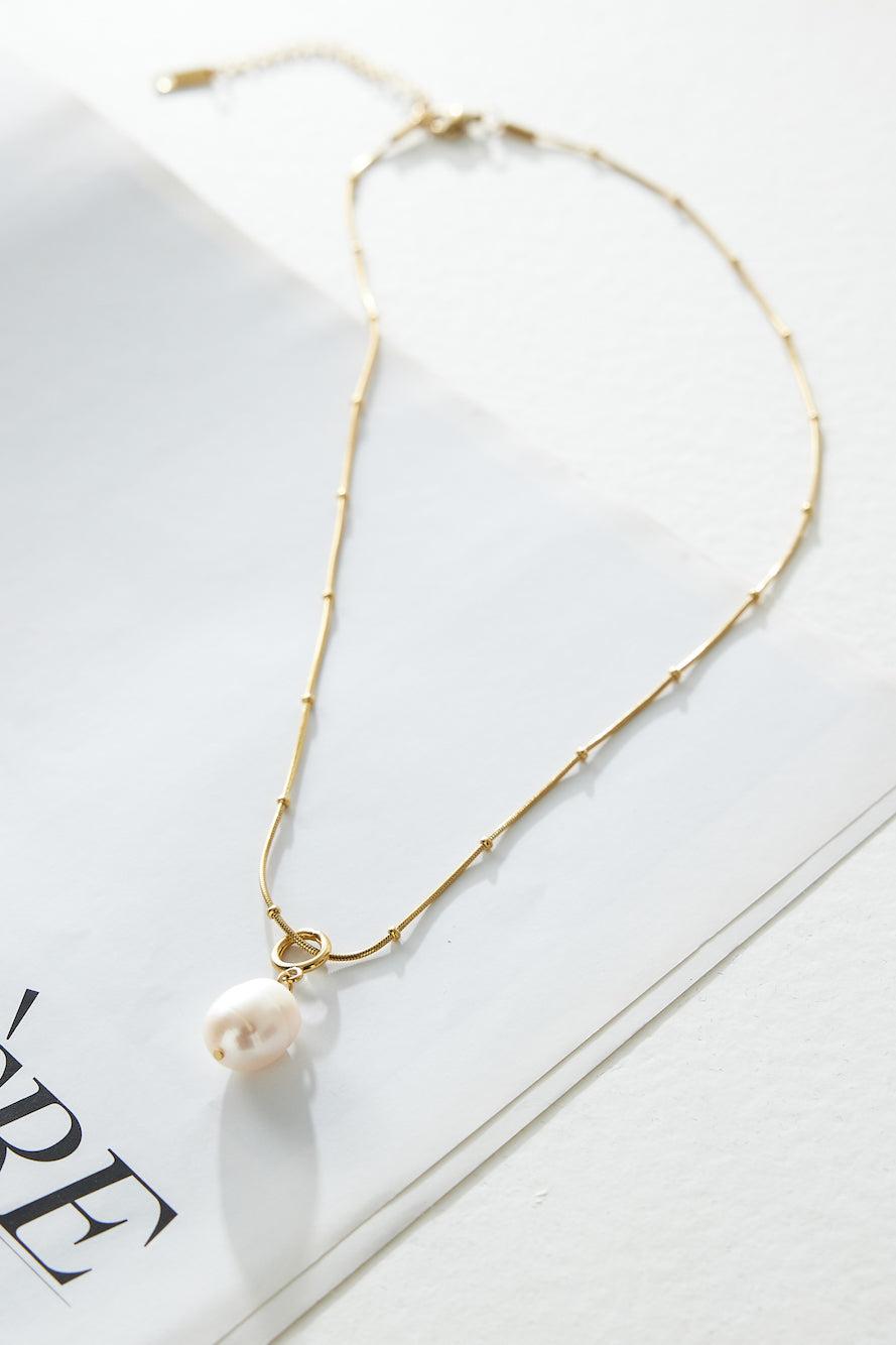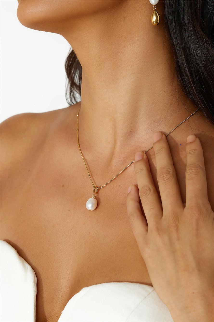 Gold plated. Polished metal construction. True to size. Please Note: Avoid contact with lotions and perfumes. It's giving classy, girl. The 18k Gold Plated Statement Pearl Necklace features a gorgeous chain with a pearl pendant. Style with all your 'fits.