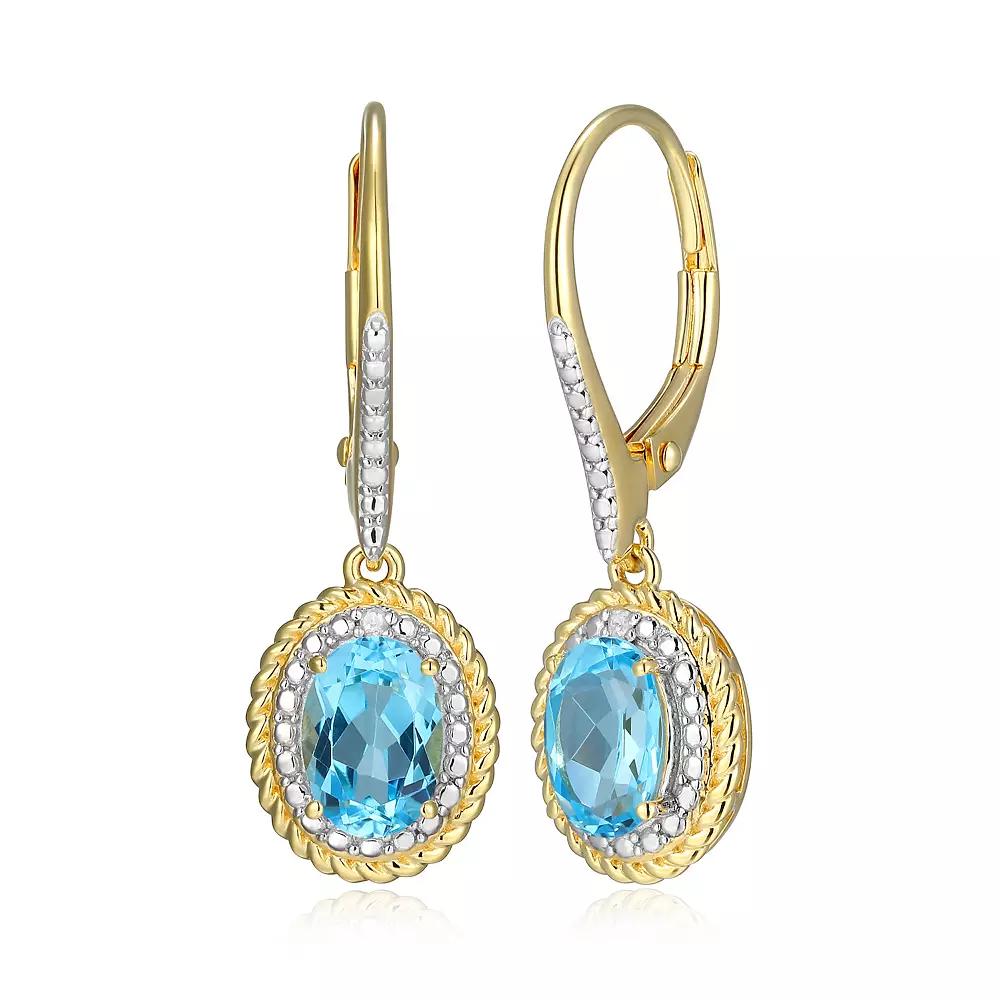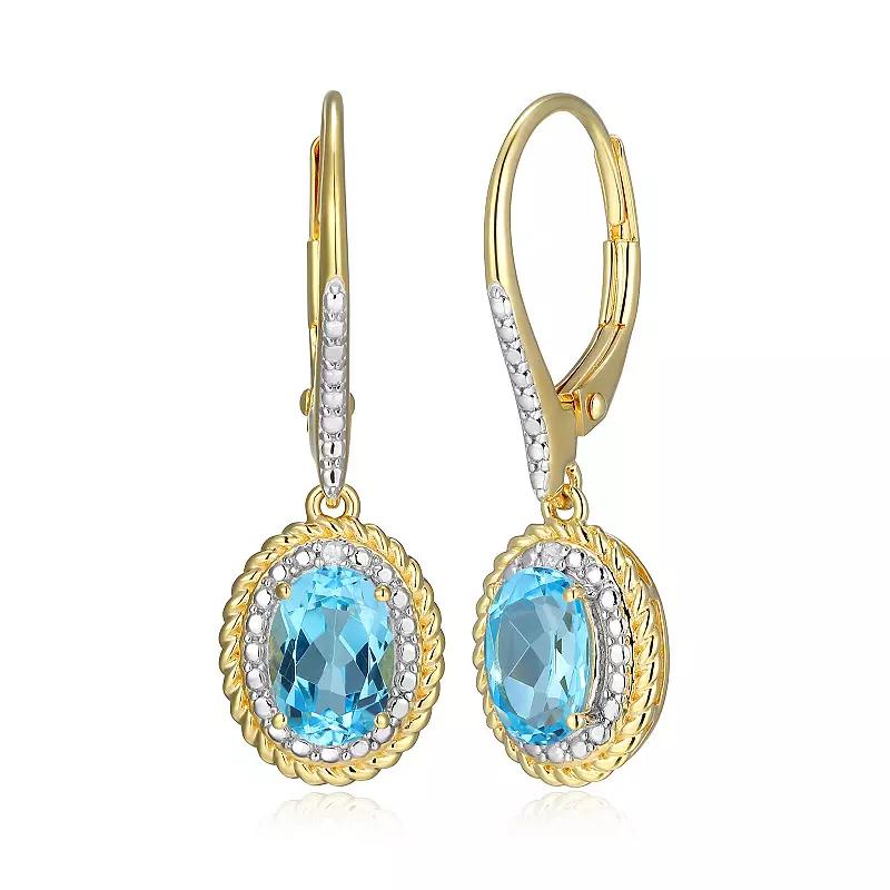 These 18k Gold Over Silver Gemstone & Diamond Accent Halo Leverback Earrings feature a classic halo design with sparkling gemstones and diamonds for added sophistication. Click on this JEWELRY & WATCHES GUIDE to learn about fit, styles, materials and more! These 18k Gold Over Silver Gemstone & Diamond Accent Halo Leverback Earrings feature a classic halo design with sparkling gemstones and diamonds for added sophistication. Click on this JEWELRY & WATCHES GUIDE to learn about fit, styles, materials and more! FEATURES Dimensions: 26.7 mm x 9 mm Closures: leverback Nickel safe Metal: sterling silver Plating: 18k gold Finish: polished Packaging: boxedSTONE DETAILS Stone type: garnet, Swiss blue topaz, green quartz, African amethyst, peridot, lab-created white sapphire, lab-created opal, lab-created ruby, citrine, mother of pearl, lab-created sapphire, spinel Shape: oval, cabochon, bead, round Setting: prongDIAMOND DETAILS NA Total weight: less than 1/10 ct. Color grade: I-K Clarity: I5 Shape: round Setting: paveCULTURED PEARL DETAILS Pearl size: 4.5 mm - 5 mm Type: freshwater Shape: near round Color: white Diamond weights are approximate. Diamond Total Weights may vary between .01 and .13 ct. Some diamonds consist of fewer than 17 facets. Gemstones may have been treated to enhance their appearance. Special care may be required. Please visit our Gemstone Treatment & Special Care Guide for more information. Image(s) may be enlarged to show detail. Size: One Size. Color: Dec Gen Blue Topaz. Gender: female. Age Group: adult. Material: Gold Over Sterling.