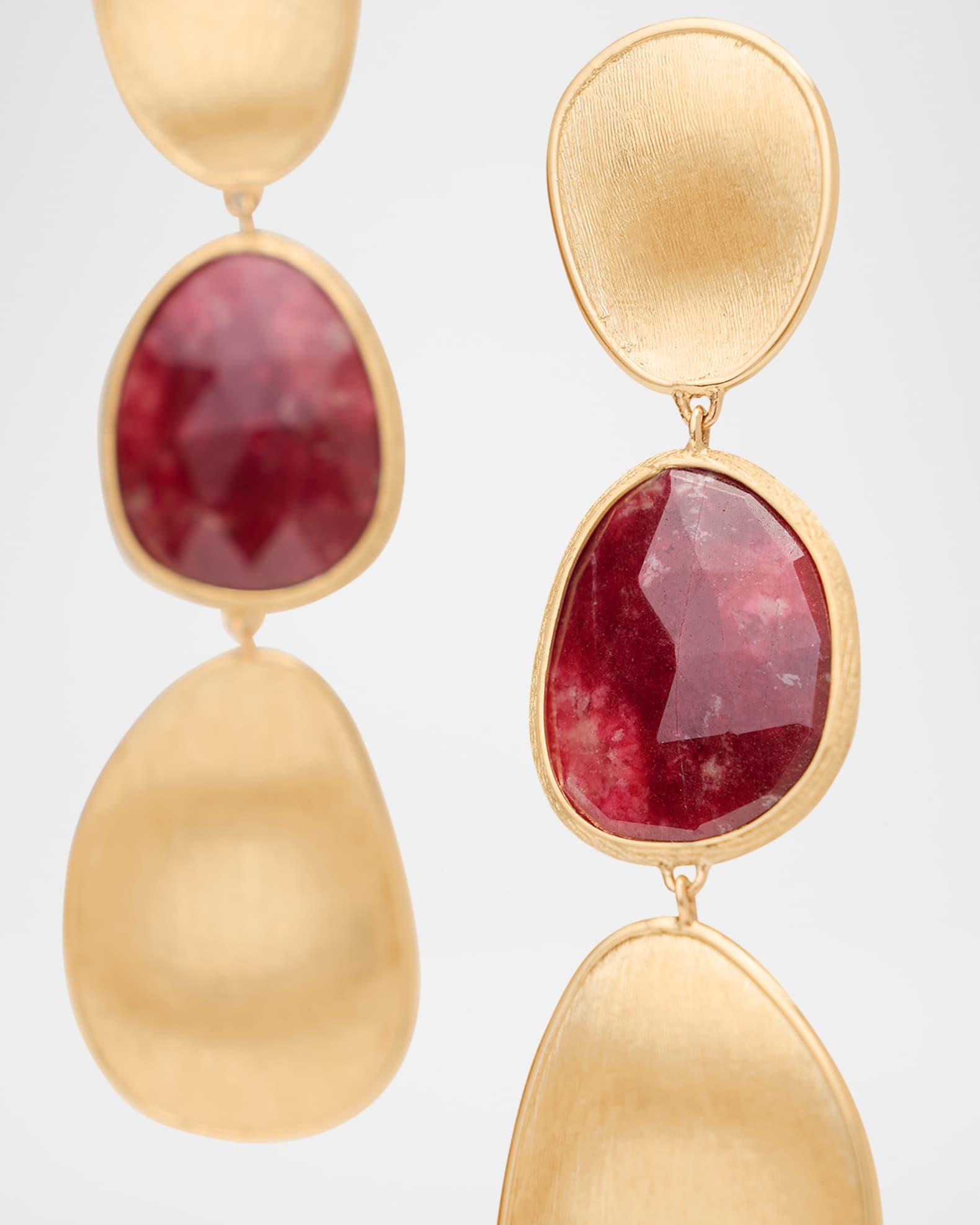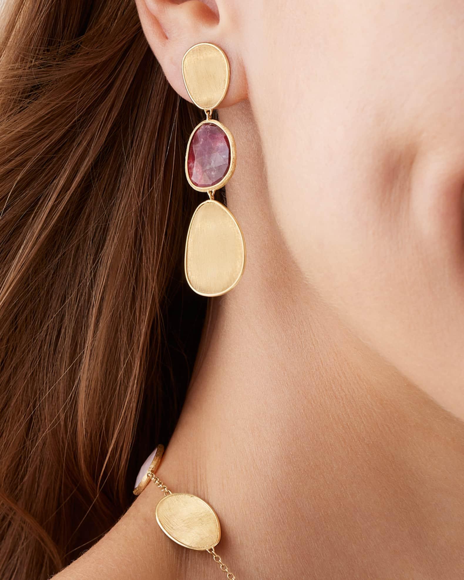 Marco Bicego earrings feature faceted thulite drops Hand-engraved 18-karat yellow gold Professional cleaning recommended For pierced ears Made in Italy Please note: Each Marco Bicego piece is unique and actual stones used may vary. About the Marco Bicego Lunaria Collection: The Lunaria Collection is a line born from Marco’s love of nature. Crafted entirely of hand-engraved, 18-karat yellow gold plates framed by polished gold and hand-molded by expert craftsmen, the collection resembles the gentle movement of petals blowing in the wind. The alternating sequences of plates yield lustrous necklaces, bracelets, earrings, and rings that translate into elegant and refined styles.