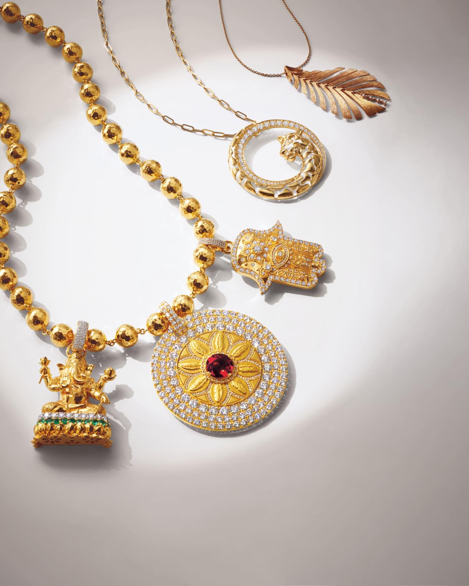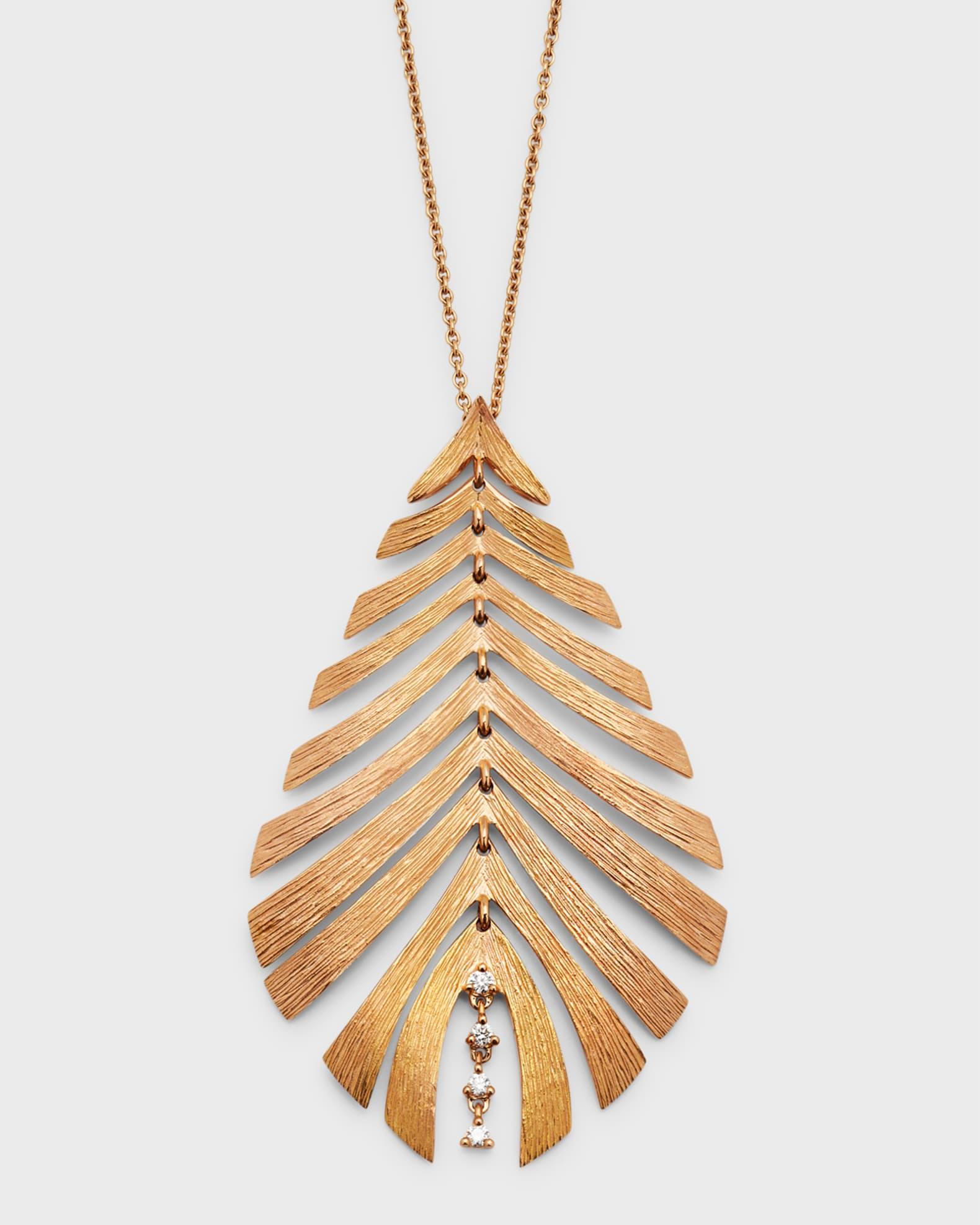 18K Rose Gold Leaf Pendant Necklace with Diamonds