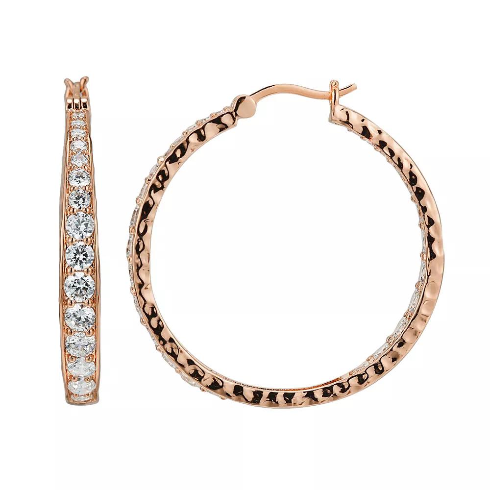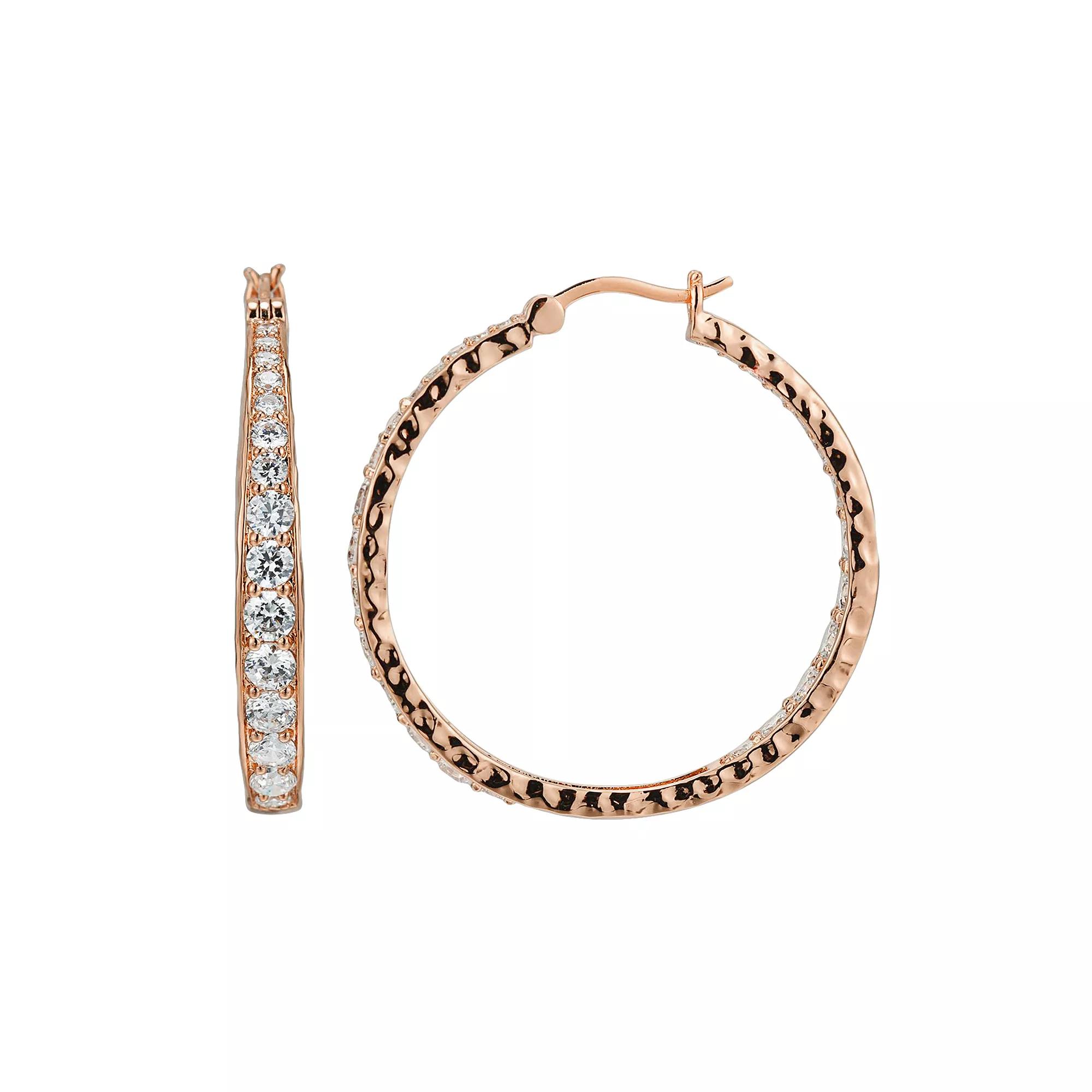 18k Rose Gold Over Silver-Plated Cubic Zirconia Hammered Hoop Earrings, Women's, White