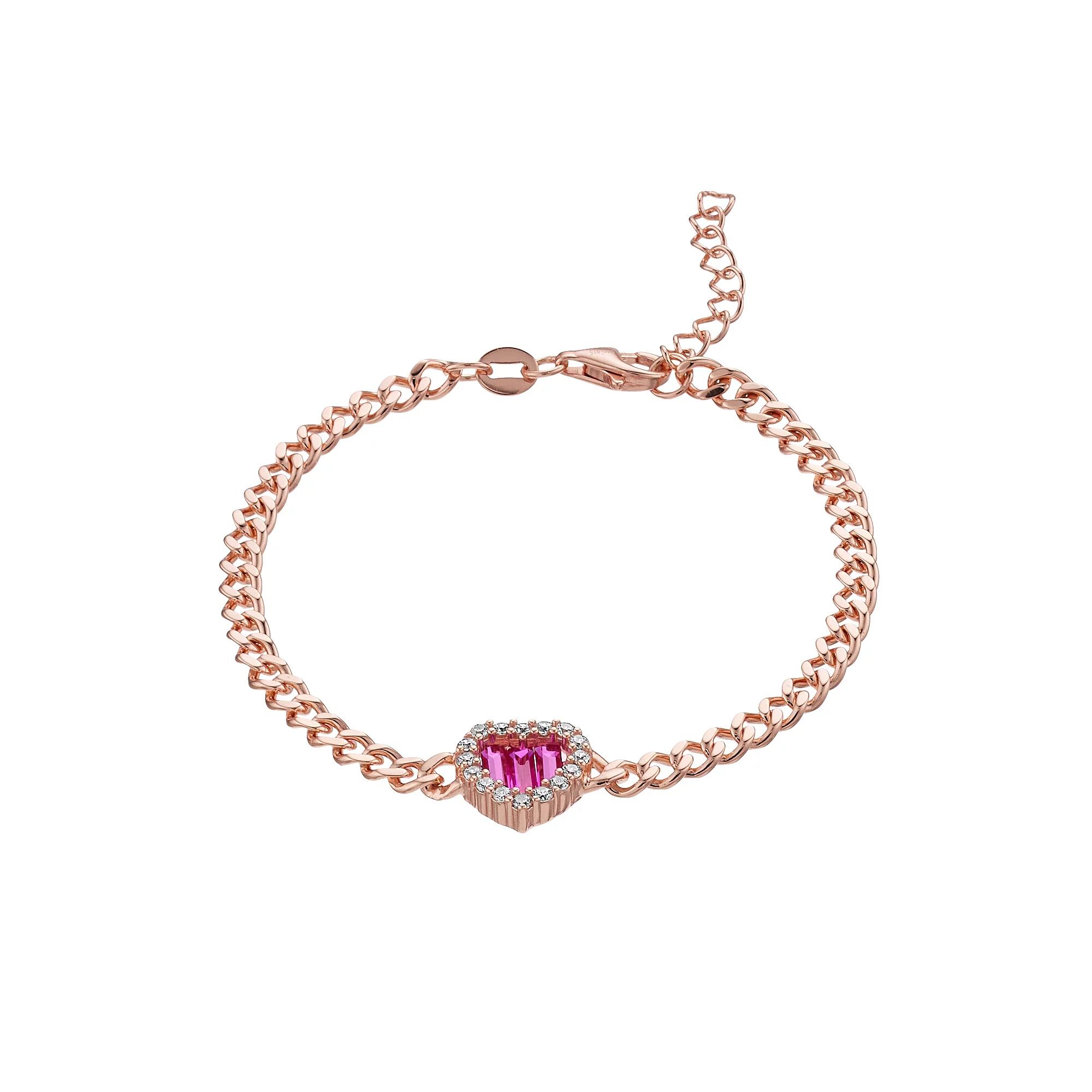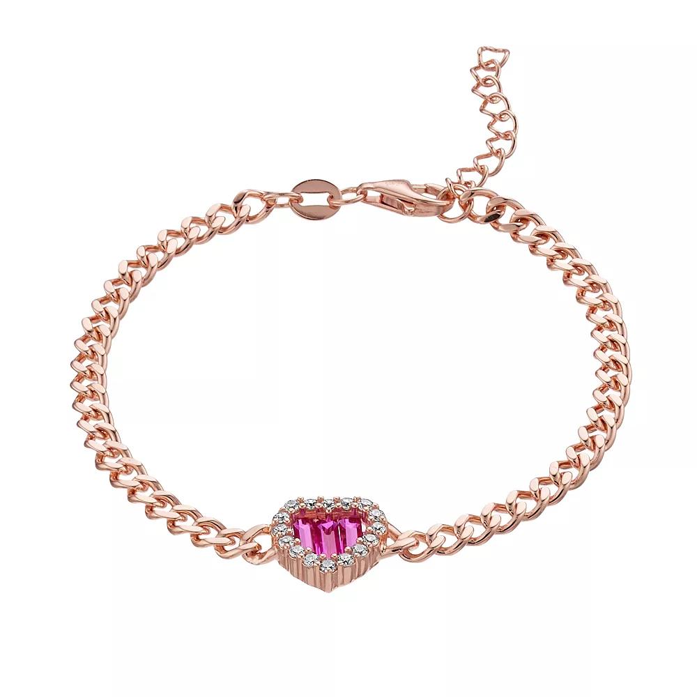 You'll love the captivating look of this cubic zirconia heart tennis bracelet. Click on this JEWELRY & WATCHES GUIDE to learn about fit, styles, materials and more! You'll love the captivating look of this cubic zirconia heart tennis bracelet. Click on this JEWELRY & WATCHES GUIDE to learn about fit, styles, materials and more! FEATURES Chain type: link Length: 7 in. Chain width: 2.4 mm Clasp: lobster-claw Metal: sterling silver Plating: 14k rose gold Finish: polished Packaging: boxedSTONE DETAILS Stone type: pink cubic zirconia, white cubic zirconia Shape: round Setting: prong Gemstones may have been treated to enhance their appearance. Special care may be required. Please visit our Gemstone Treatment & Special Care Guide for more information. Size: 7". Gender: female. Age Group: adult. Material: Gold Over Sterling.