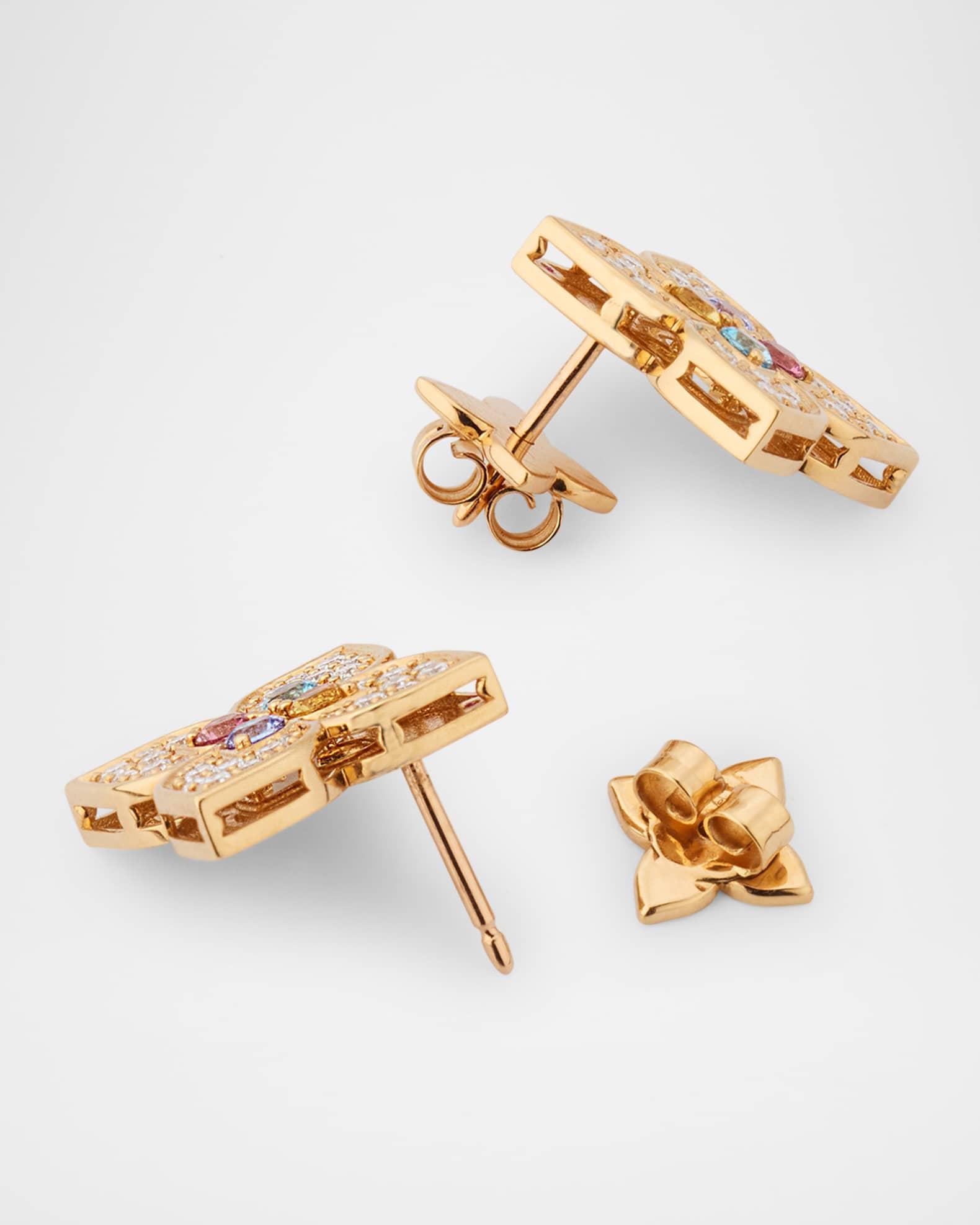 18K Rose Gold Venetian Princess Diamond Earrings with Topaz, Tanzanite, Rubellite, and Citrine