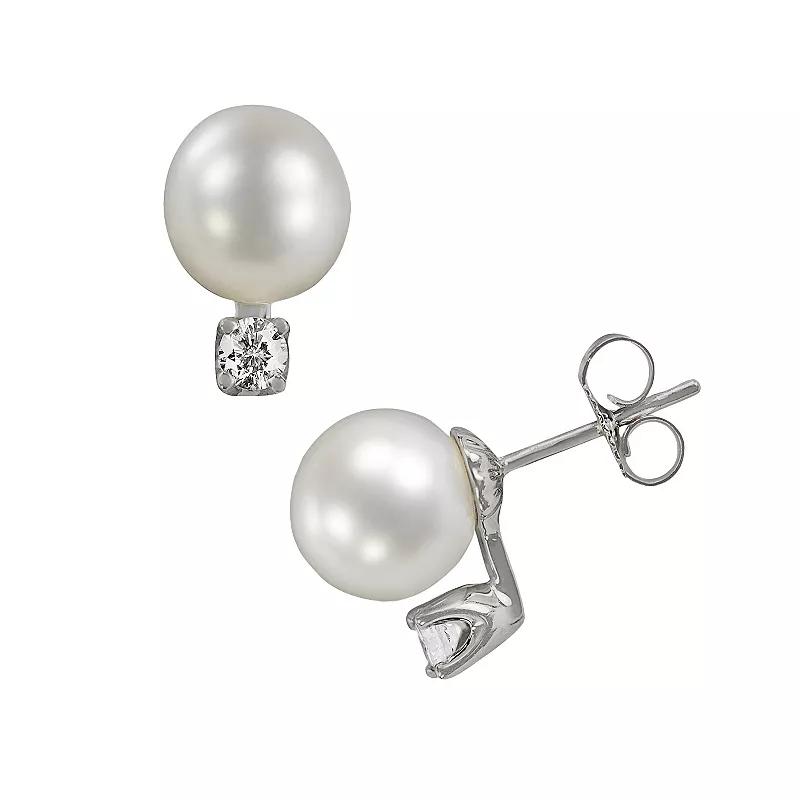 These beautiful diamond and AAA Akoya cultured pearl stud earrings lend a stylish finishing touch to any ensemble. Comes in a gift box.Earring Details: Length: 11.2 mm Backings: post Metal: rhodium-plated 18k white goldDiamond Details: Total weight: 1/5 ct. Cut: round Color: G-H Clarity: VS2 Setting: prongCultured Pearl Details: Type: Akoya Shape: round Size: 8-8.5 mm Color: whiteImage(s) may be enlarged to show detail.Diamond weights are approximate. Diamond total weights may vary between .01 and .08 ct. Some diamonds have fewer than 17 facets.Please note, due to the high value of this item, a signature may be required upon delivery.Gemstones may have been treated to enhance their appearance. Special care may be required. Please visit our Gemstone Treatment & Special Care Guide for more information. Size: One Size. Gender: female. Age Group: adult.