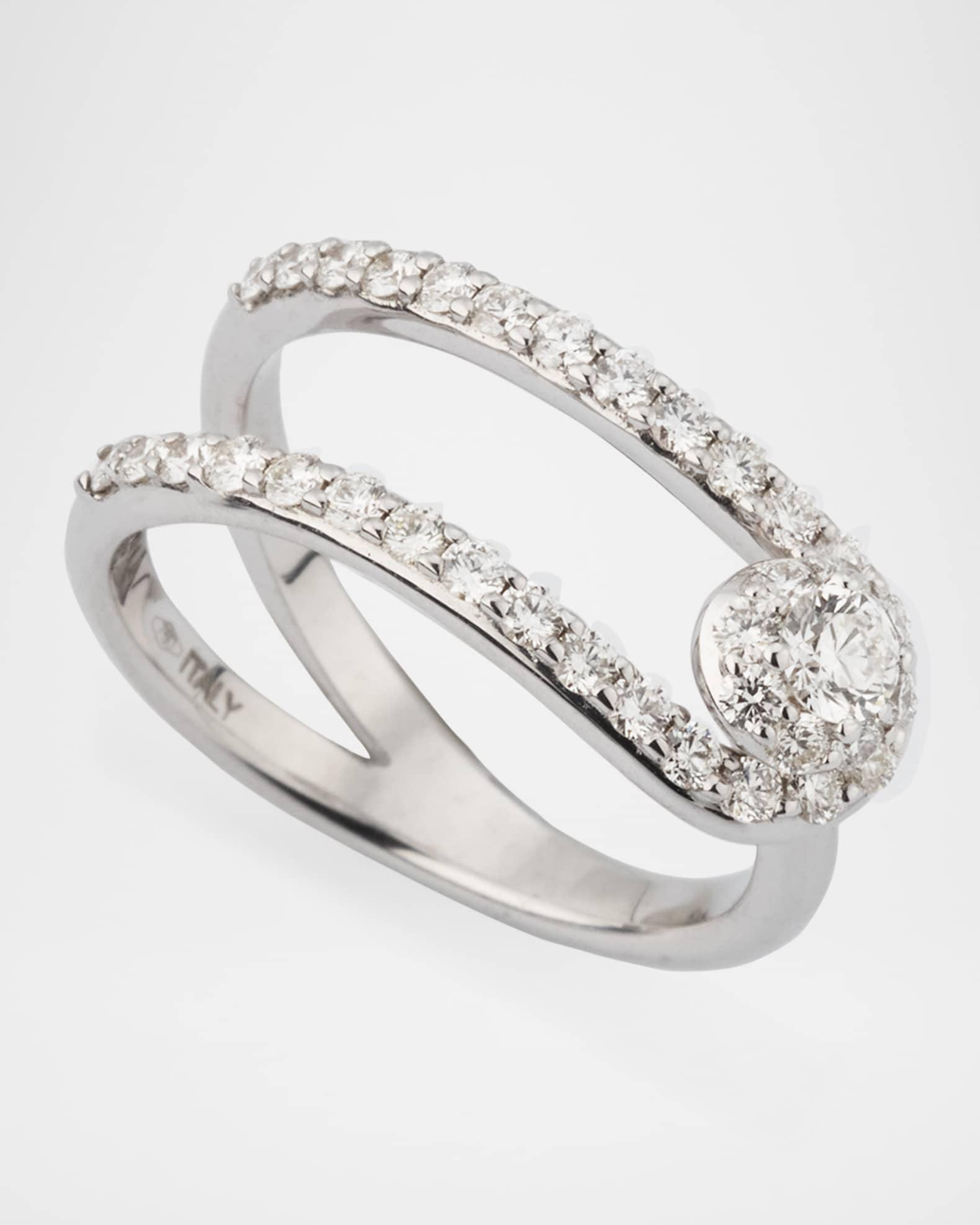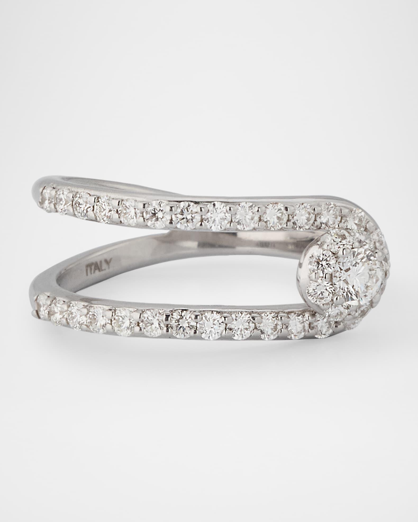 Krisonia ring from the Anima collection features a curved design with diamonds Approx. ring size 5.75 Polished 18-karat white gold Total carat weight: 0.68 Made in Italy