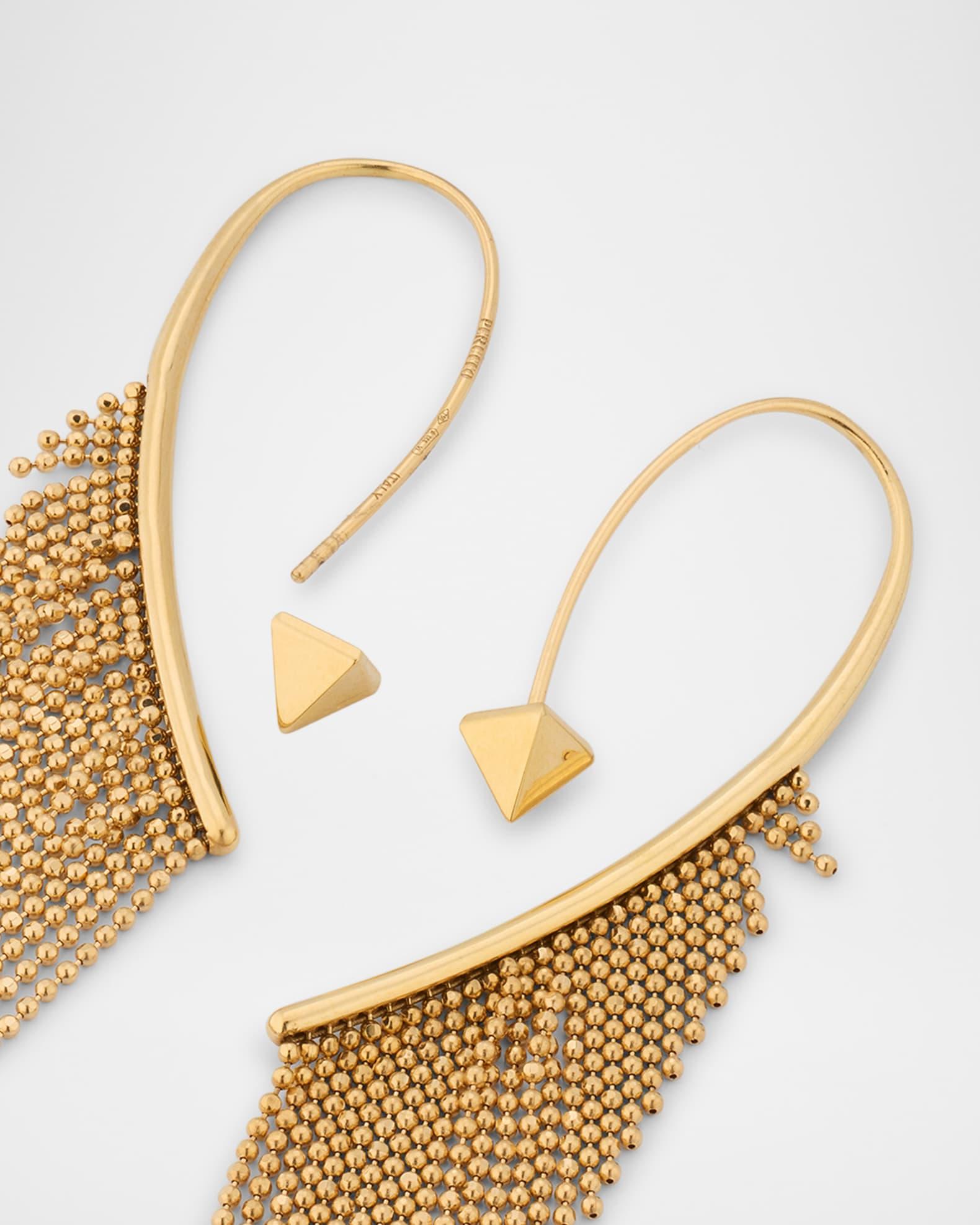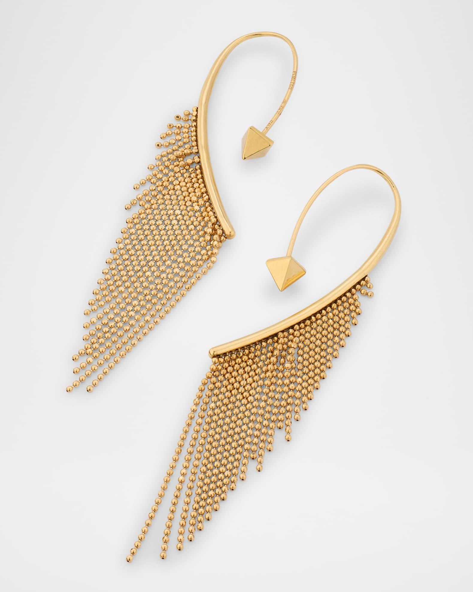 Peruffo threader earrings from the Chains collection are designed with a pyramid stud and cascading fringe Polished 18-karat yellow gold Thread-through style For pierced ears Made in Italy