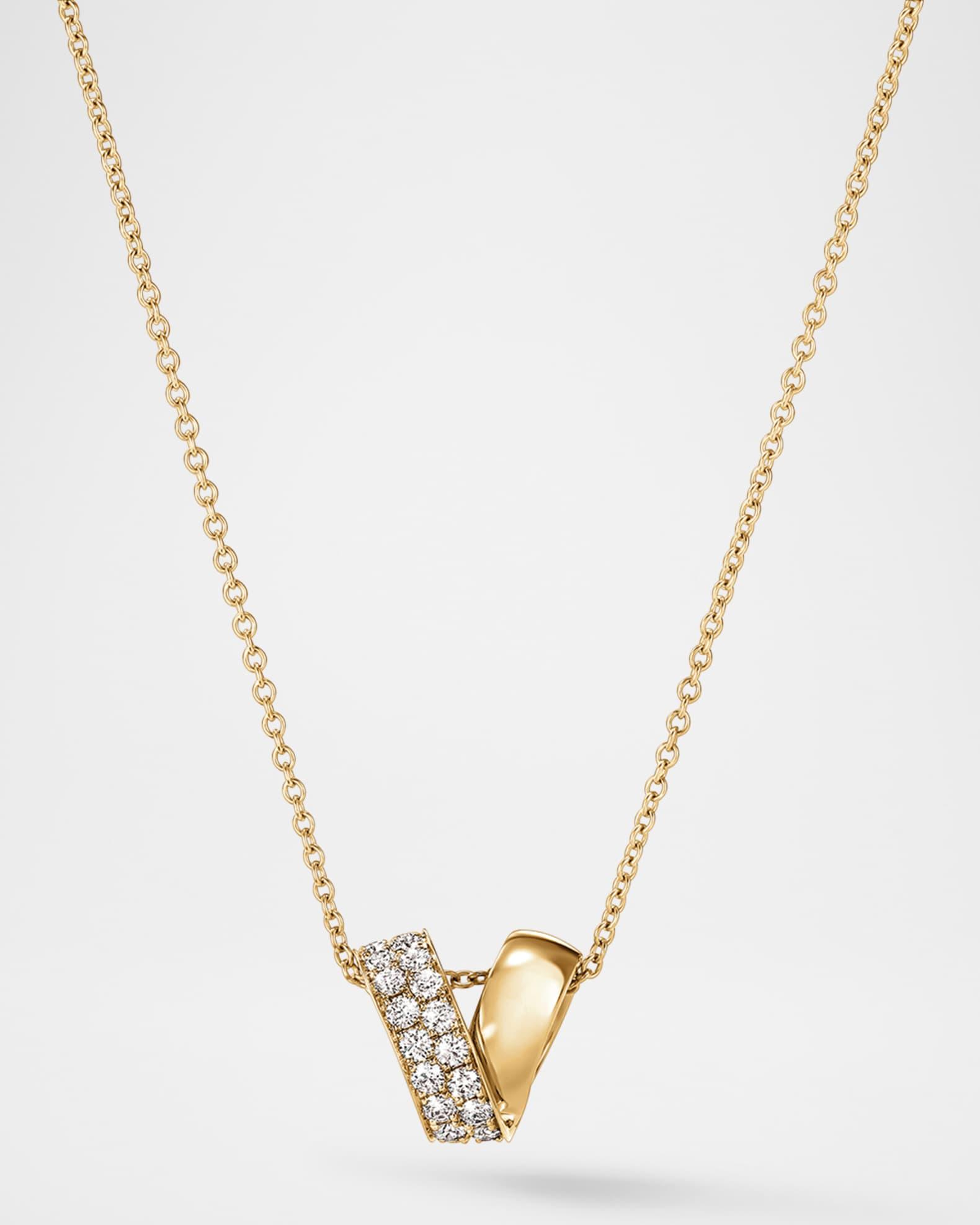 18K Yellow Gold Inside Out Spiral Diamond Pendant Necklace