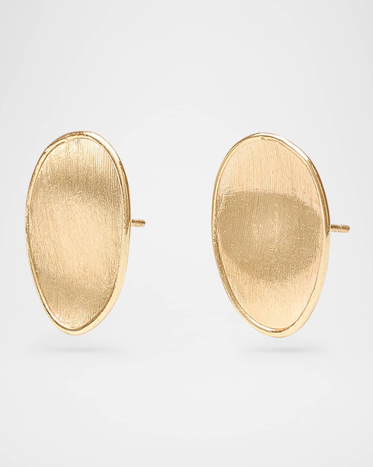 Irregularly shaped stud earrings in 18K yellow gold, finely hand-engraved using an ancient Florentine technique. Perfect to complete any look with an added touch of light. Marco Bicego stud earrings from the Lunaria Collection Hand-engraved 18-karat yellow gold For pierced ears Professional cleaning recommended Made in Italy Please note: Each Marco Bicego piece is unique and actual stones used may vary.