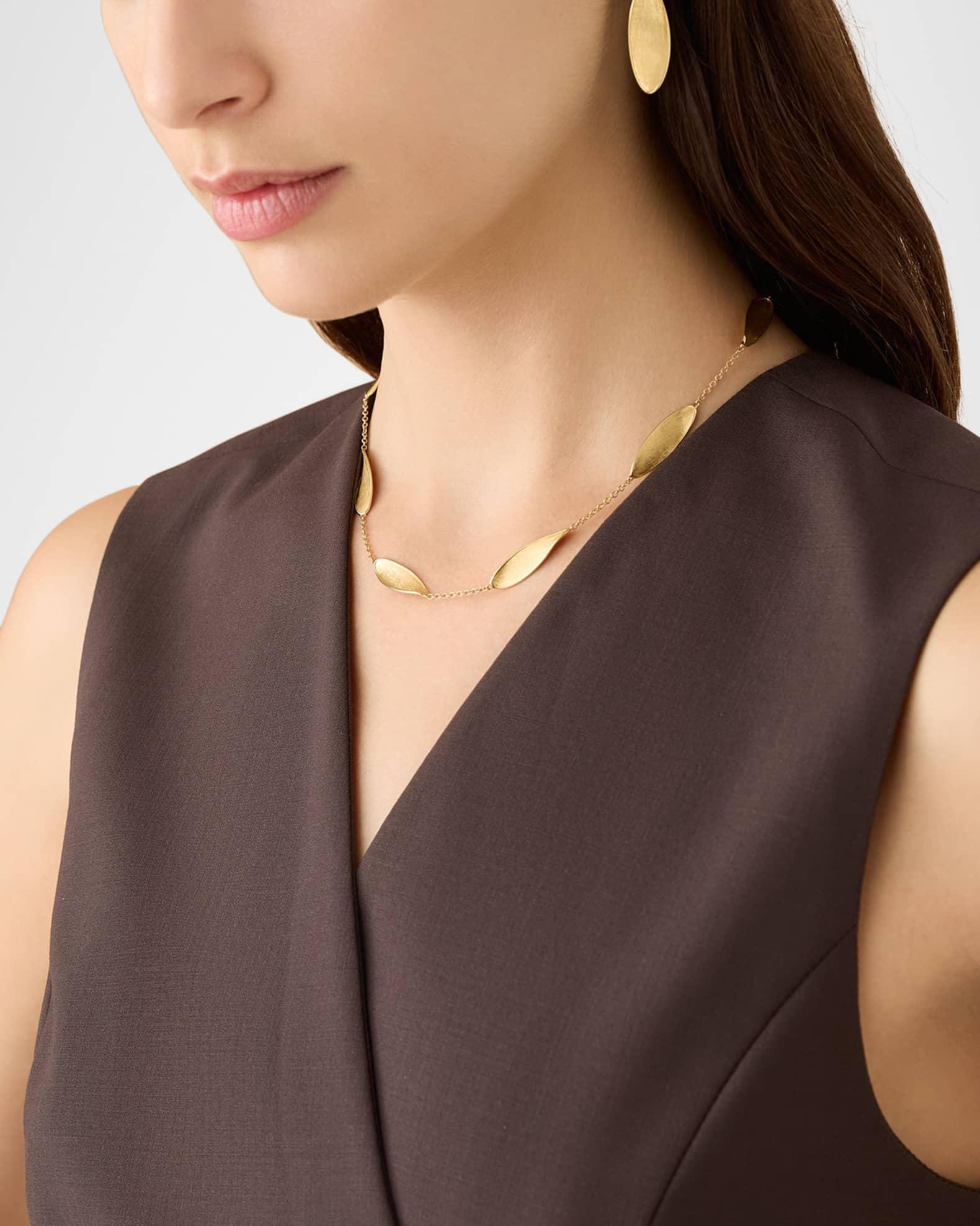 From the Lunaria collection, this Marco Bicego necklace is handcrafted with brushed Italian gold for a silky finish. 18-karat yellow gold Adjustable length Lobster clasp Made in Italy Please note: Each Marco Bicego piece is unique and actual stones used may vary. About the Marco Bicego Lunaria Collection: The Lunaria Collection is a line born from Marco’s love of nature. Crafted entirely of hand-engraved, 18-karat yellow gold plates framed by polished gold and hand-molded by expert craftsmen, the collection resembles the gentle movement of petals blowing in the wind. The alternating sequences of plates yield lustrous necklaces, bracelets, earrings, and rings that translate into elegant and refined styles.