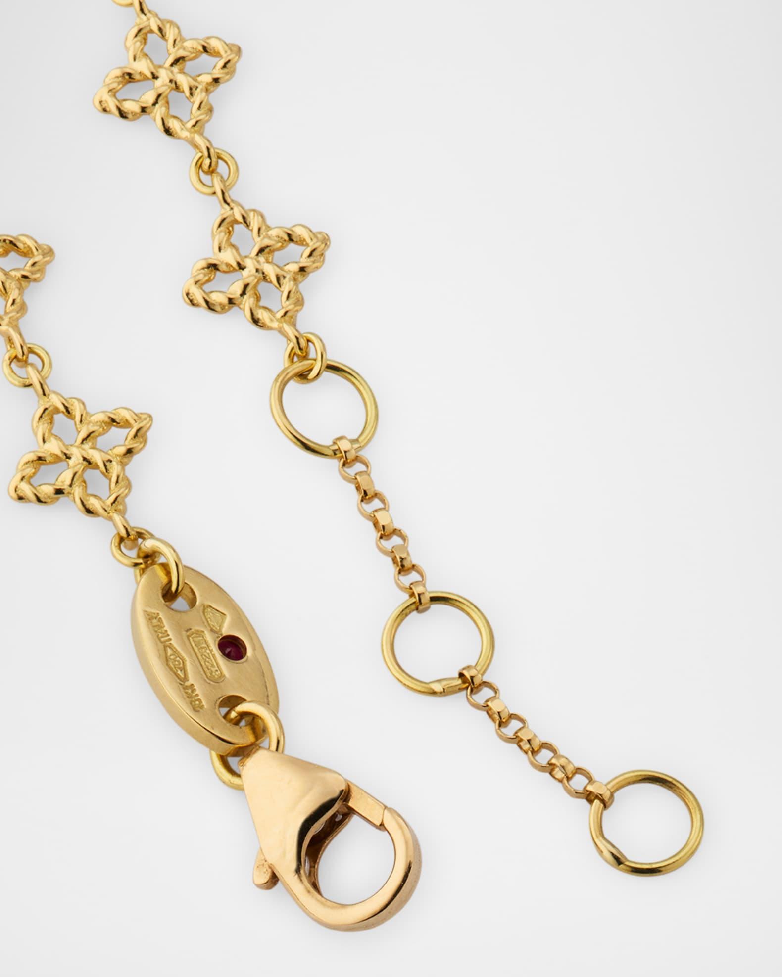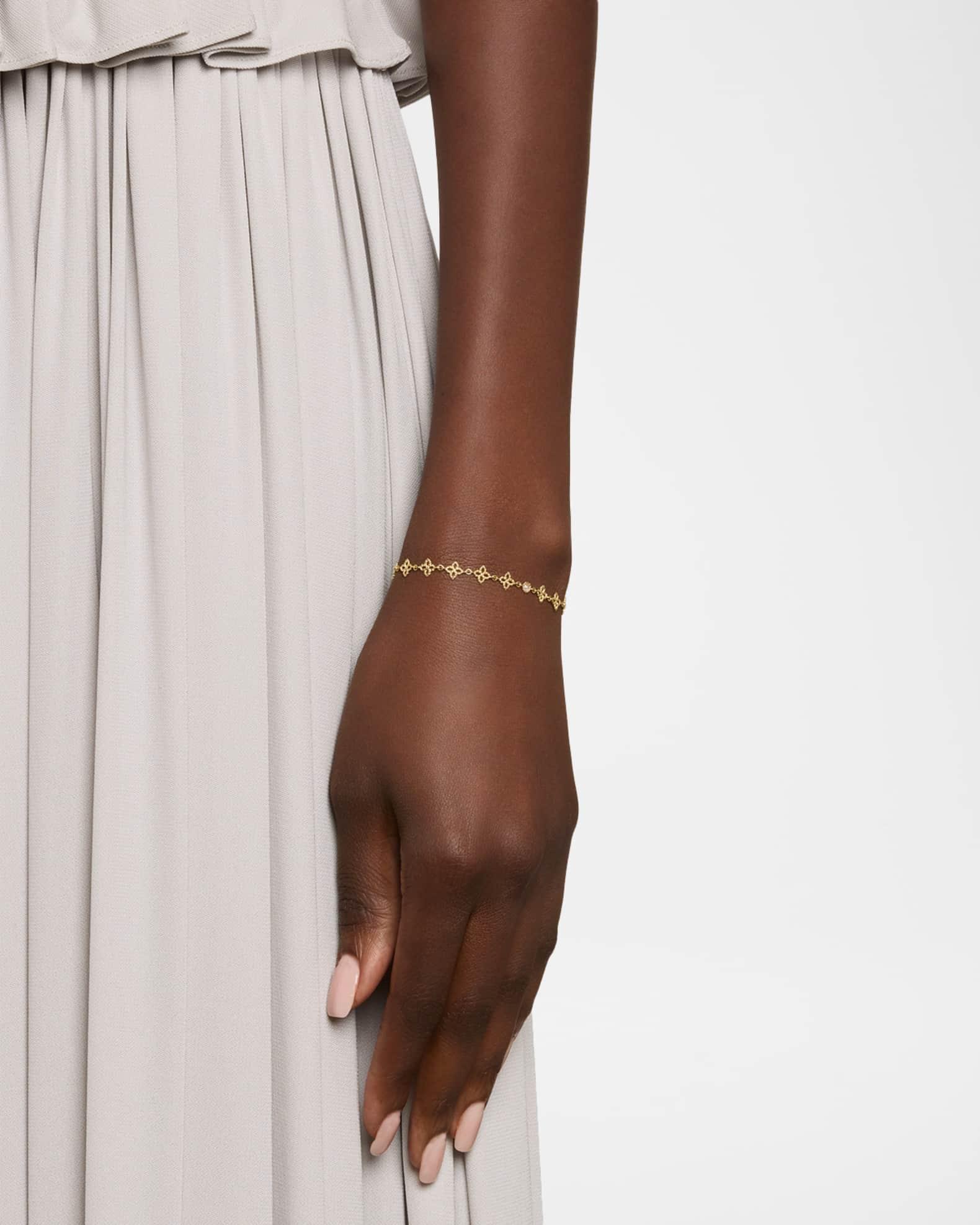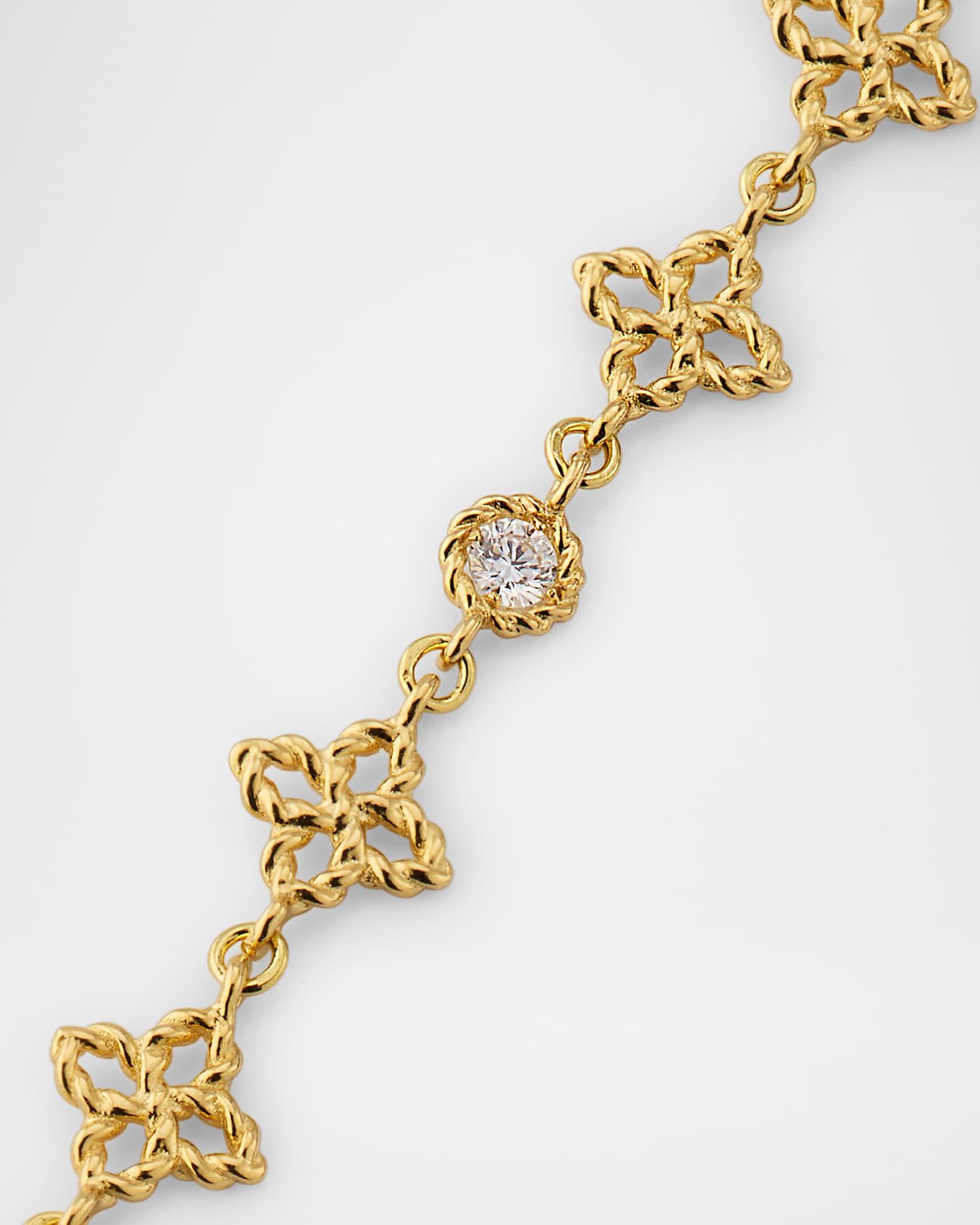 The magic of classic fairytales inspired this bracelet and other pieces from the Roberto Coin Principessa collection. White diamonds and the brand's signature floral motif detail this chain bracelet. Approx. 7" length; 6mm flowers Polished 18-karat yellow gold Diamond total carat weight: 0.03 Signature hidden genuine ruby Adjustable length Lobster clasp Made in Italy
