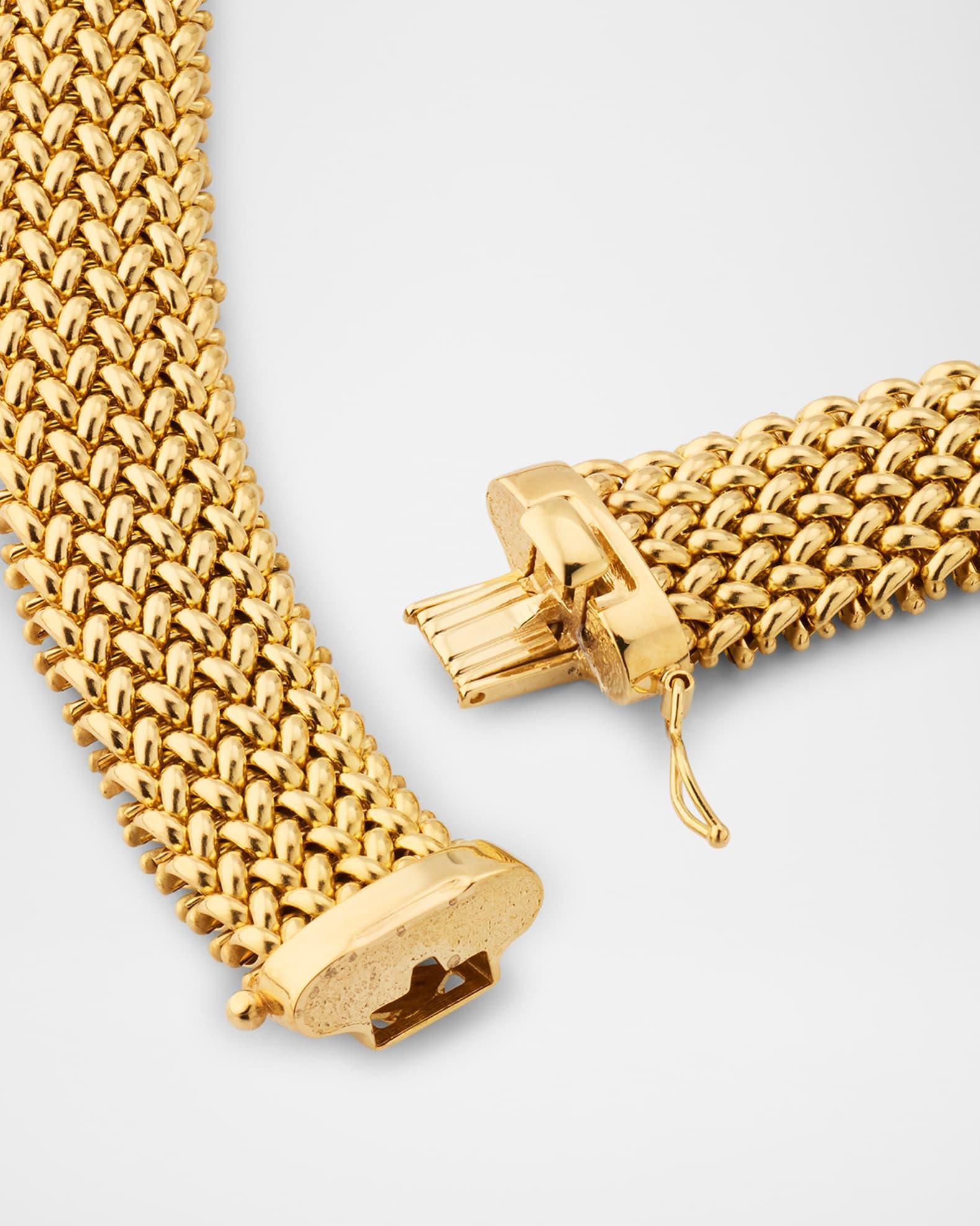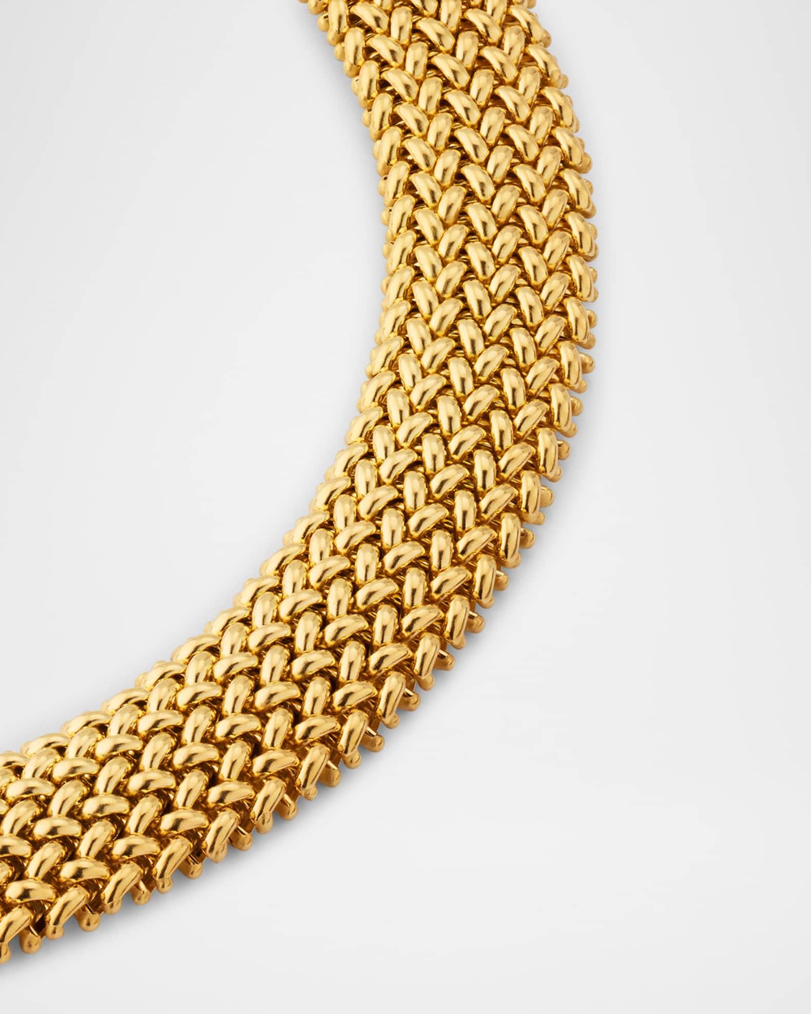 Alberto Milani transforms Italian gold links into a thick wheat chain for this Via Ornato Chicco necklace. Approx. 18" length x 0.6" width (14mm) Polished 18-karat yellow gold Push-lock closure Made in Italy
